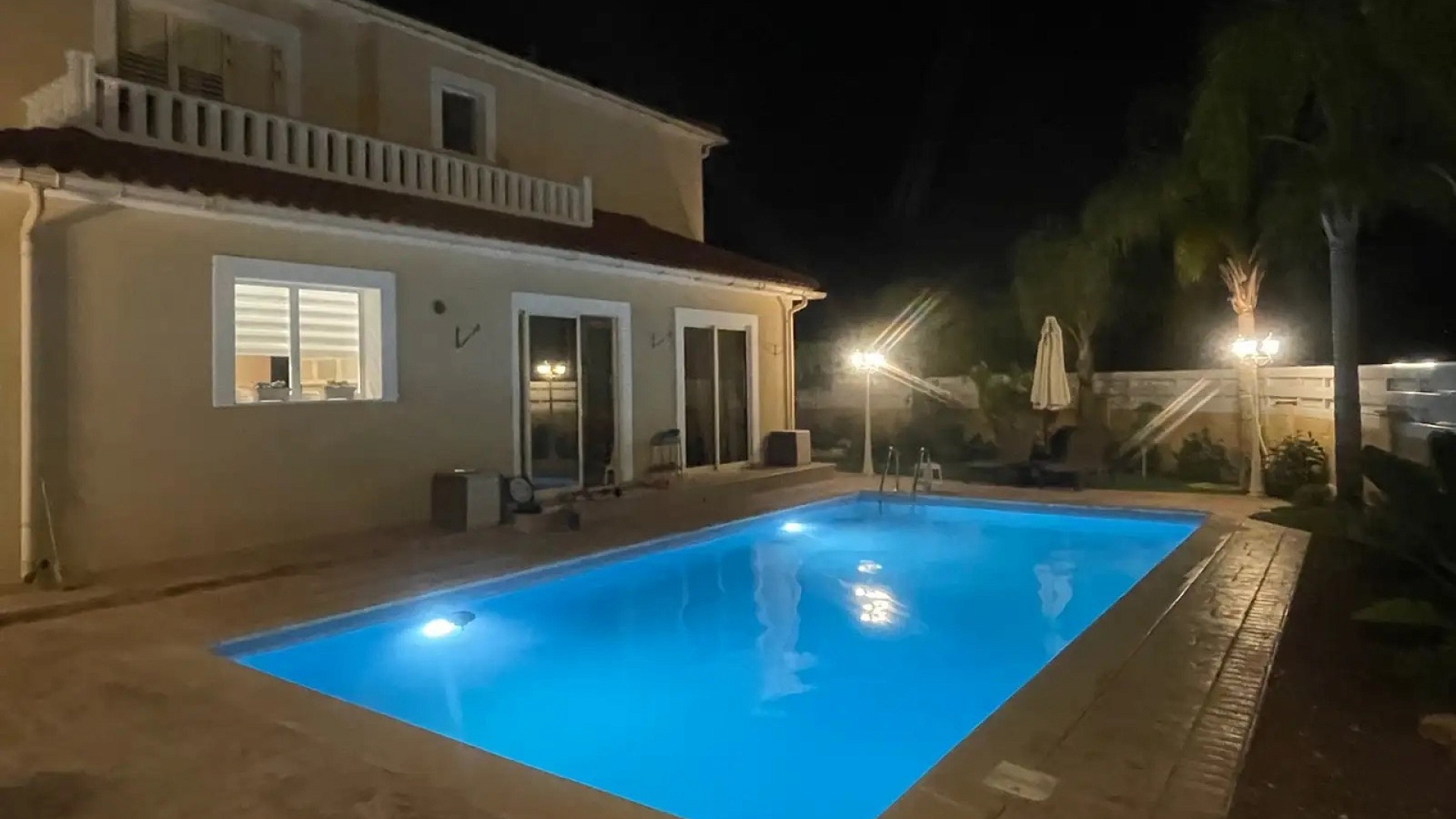 Продается четырёхспальная вилла 270 м² на участке 548 м² в районе Perivolia, Larnaca. Вилла включает 4 спальни, 4 ванные комнаты с санузлами, кухню, гостиную, балконы, игровую комнату, мансарду, кладовые помещения, крытую парковку, а также бассейн и сад. Крытая площадь 247 м² включает веранду и просторный гараж, объединённый с большой зоной хранения. В мастер-спальне предусмотрен санузел en-suite и гардеробная. Резиденция полностью меблирована, оснащена бытовой техникой, включая кондиционирование во всех помещениях, центральное отопление, камин, сигнализацию, алюминиевые окна с тройным остеклением, систему давления и очистки воды с водяными баками, москитные сетки и рольставни. Дом 2007 года постройки, находится в отличном состоянии, энергоэффективность класса A++ с внешней теплоизоляцией. На территории обустроен зрелый ландшафтный сад с папайей, кумкватом, клементином и лимоном, зона барбекю, бассейн 4,5×9 м с уличным душем. Предусмотрены открытые и крытые парковочные места на 2 автомобиля с автоматическими воротами. С верхнего этажа открываются виды на море и горы. Имеется Title Deeds. Недвижимость расположена в охраняемом комплексе на угловом участке, всего 150 м от моря, рядом с районами Rigena Tower и Faros, с удобным доступом ко всей необходимой инфраструктуре и магазинам, включая Lidl, Sklavenitis, Alfamega.