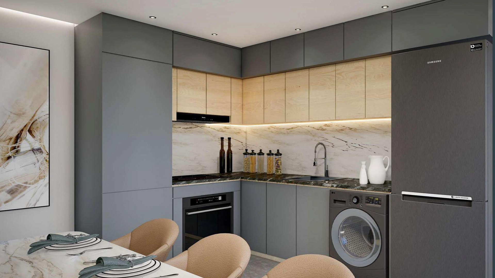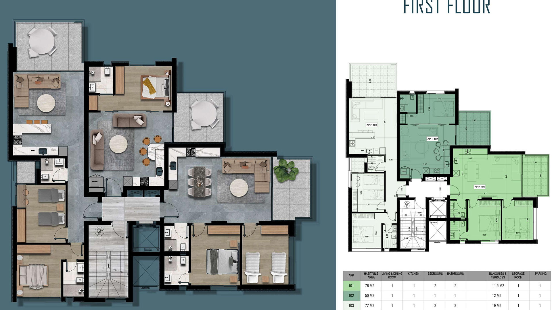 Жилой комплекс создан на основе концепции современной архитектуры, органично сочетающей эстетическую красоту с практичным дизайном. Каждая квартира спроектирована таким образом, чтобы пропускать обильный естественный свет, предлагая при этом комфорт и удобство роскошной жизни. Для каждой квартиры предусмотрена крытая парковка и кладовая.