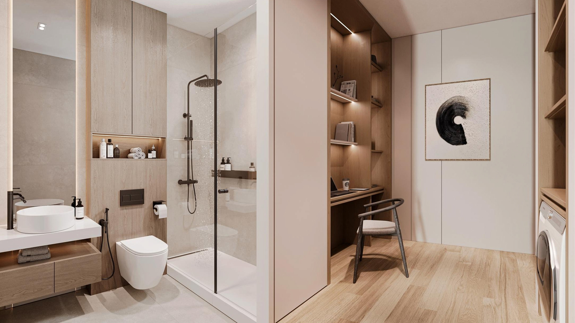 Дом оснащён фотоэлектрической системой мощностью 3 кВт, солнечными водонагревателями с рамами, центральным отоплением. Предусмотрены расширительный бак на крыше, два парковочных места, расположенные рядом друг с другом, кладовая. В отделке используются высококачественные материалы, включая керамические покрытия и техногранит на кухонных рабочих поверхностях, с возможностью индивидуального 3D-проектирования кухни на этапе строительства. Также предусмотрены фильтр для воды на кухне, возможность установки мангала, внешней фасадной облицовки (мрамор, HPL или дерево) и освещения зелёных зон участка. Предусмотрена установка кондиционеров, видеодомофона, системы сигнализации и камер видеонаблюдения, а также интеллектуального термостата с возможностью управления с мобильного телефона.