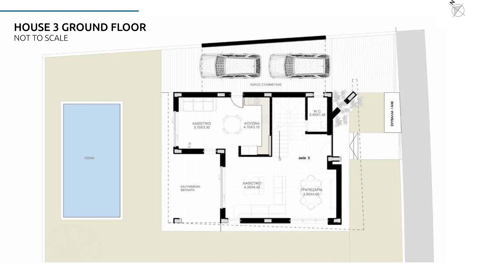 Дом располагает просторным частным садом, возможностью установки бассейна по желанию владельца, гаражом на две машины и просторными террасами. На первом этаже предусмотрена открытая планировка гостиной, столовой и современной кухни, которая обеспечивает прямой вид и удобный выход на крытую террасу и сад, создавая атмосферу уюта и гостеприимства. Также на этом уровне расположен гостевой туалет.