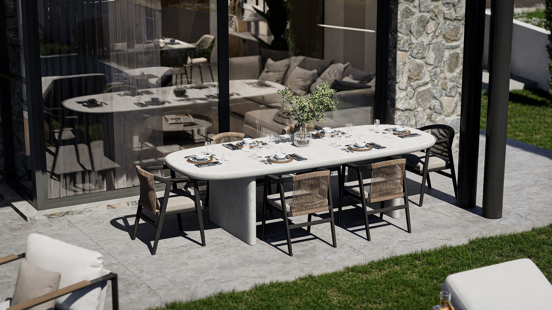 Окна с двойным термостеклопакетом обеспечивают отличную тепло- и шумоизоляцию. Алюминиевые элементы конструкции изготовлены из термостойкого материала, что придаёт дому прочность и высокую энергоэффективность.