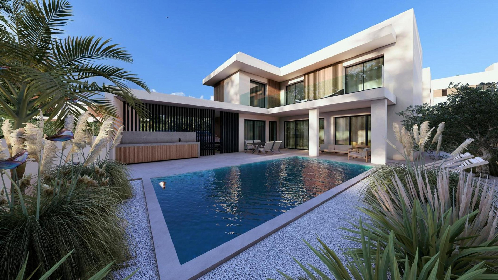 Дом имеет продуманную и функциональную планировку с просторной гостиной, современной кухней открытого типа и уютными спальнями. В строительстве используются качественные материалы и современные технологии, обеспечивающие высокий уровень комфорта, тепло- и шумоизоляции.