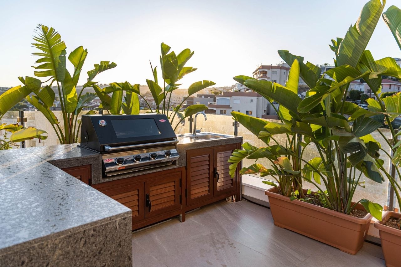 Продается трехспальный пентхаус площадью 226 м² в районе Agia Fyla, Limassol. Пентхаус включает 3 просторные спальни, 2 ванные комнаты, кухню открытого плана, объединённую с гостиной и обеденной зоной, крытую веранду площадью 16 м², открытую веранду площадью 96 м², а также кладовое помещение площадью 8 м² и 2 крытых парковочных места. Резиденция выполнена с использованием высококачественных материалов и полностью оборудована бытовой техникой, включая современную итальянскую кухню Fenix с премиальной встроенной техникой, систему кондиционирования, встроенные итальянские шкафы и двери, а также керамические напольные покрытия итальянского производства; дополнительно предусмотрена зона барбекю. Объект расположен на возвышенном участке с юго-западной ориентацией в районе Ayia Fyla, Limassol, откуда открываются панорамные виды на побережье Limassol и залив Akrotiri, обеспечивая приватность и комфорт проживания. Главная спальня оснащена собственной ванной комнатой, создавая приватное пространство для отдыха, две дополнительные спальни имеют удобный доступ к общей ванной комнате, а продуманная планировка с обилием естественного света формирует светлую и просторную атмосферу. Недвижимость предлагается без НДС и отличается высоким уровнем качества отделки, сочетая современный дизайн, премиальные материалы и исключительные видовые характеристики.