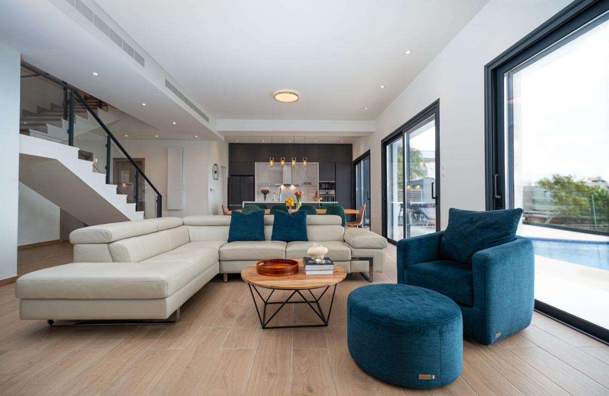 Сдаётся современная пятиспальная вилла в районе Agios Athanasios, город Limassol. Участок 762 м², общая крытая площадь 311 м², дом построен в 2023 году и отличается высоким уровнем энергоэффективности класса A. Вилла включает 5 спален, 2 офиса, 3 ванные комнаты и 1 гостевой туалет, просторную гостиную с камином, открытую планировку кухни с обеденной зоной, прачечную и кладовые помещения. Встроенные шкафы, кондиционирование VRV системы, тёплые электрические радиаторы, система умного доступа без ключа, высокие потолки и панорамные окна. На территории виллы расположен переливной бассейн с морской водой, ландшафтный сад с автоматическим поливом, зона отдыха летний душ и крытые парковочные места на 2 автомобиля с автоматическими воротами. Также предусмотрена солнечная фотоэлектрическая система и резервное водоснабжение. Вилла расположена в тихом районе с удобным доступом к основным дорогам, рядом с зелёными зонами, отличается приватностью и панорамным видом на море.