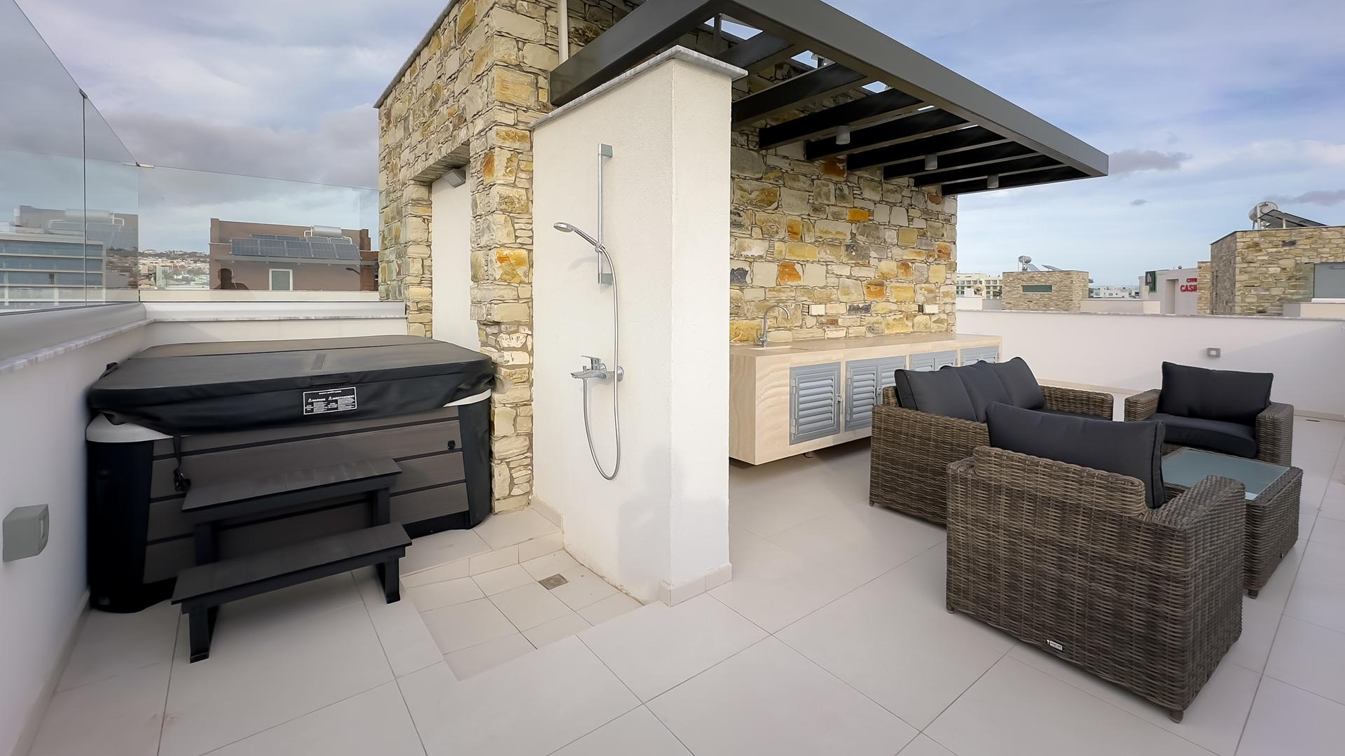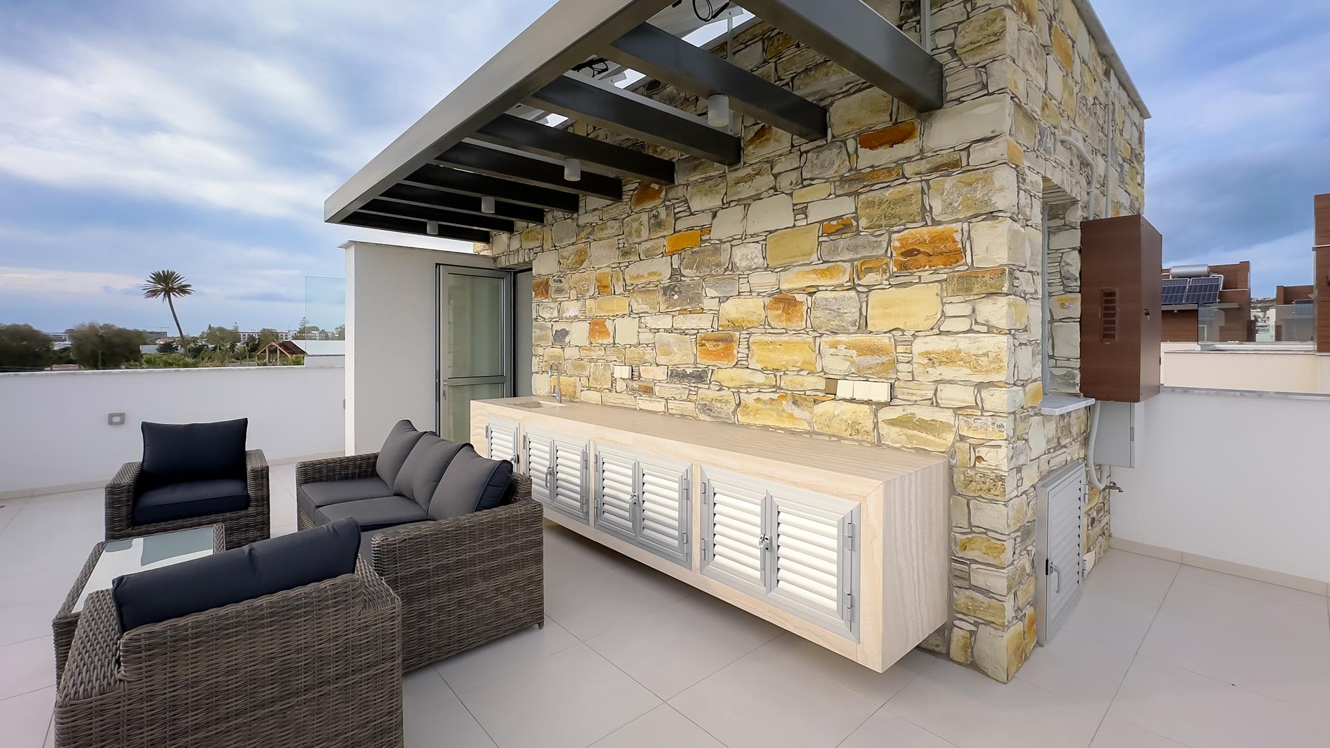 Продается четырёхспальная вилла площадью 186 м2 на участке 436 м2 в районе Agia Napa, Famagusta. Вилла включает 4 спальни, 6 ванных комнат, кухню, просторную гостиную, балконы, крытую веранду 31м² и дополнительные помещения на нижнем уровне, а также участок площадью 400 м² и открытую площадь 51 м². Резиденция полностью меблирована и оборудована бытовой техникой и системами, включая кондиционеры, посудомоечную машину, встроенные шкафы с soft-close механизмом, систему сигнализации, двойное остекление, джакузи. Объект расположен в центре Ayia Napa, в закрытом комплексе из 8 вилл, в нескольких минутах ходьбы от монастырской площади и рядом с морем и песчаными Blue Flag пляжами, а также всей необходимой инфраструктурой и развлекательными заведениями. Недвижимость выполнена с использованием высококачественных материалов, предлагает современный архитектурный дизайн, частный бассейн, ухоженный сад, зону BBQ и просторный roof garden для отдыха на открытом воздухе.