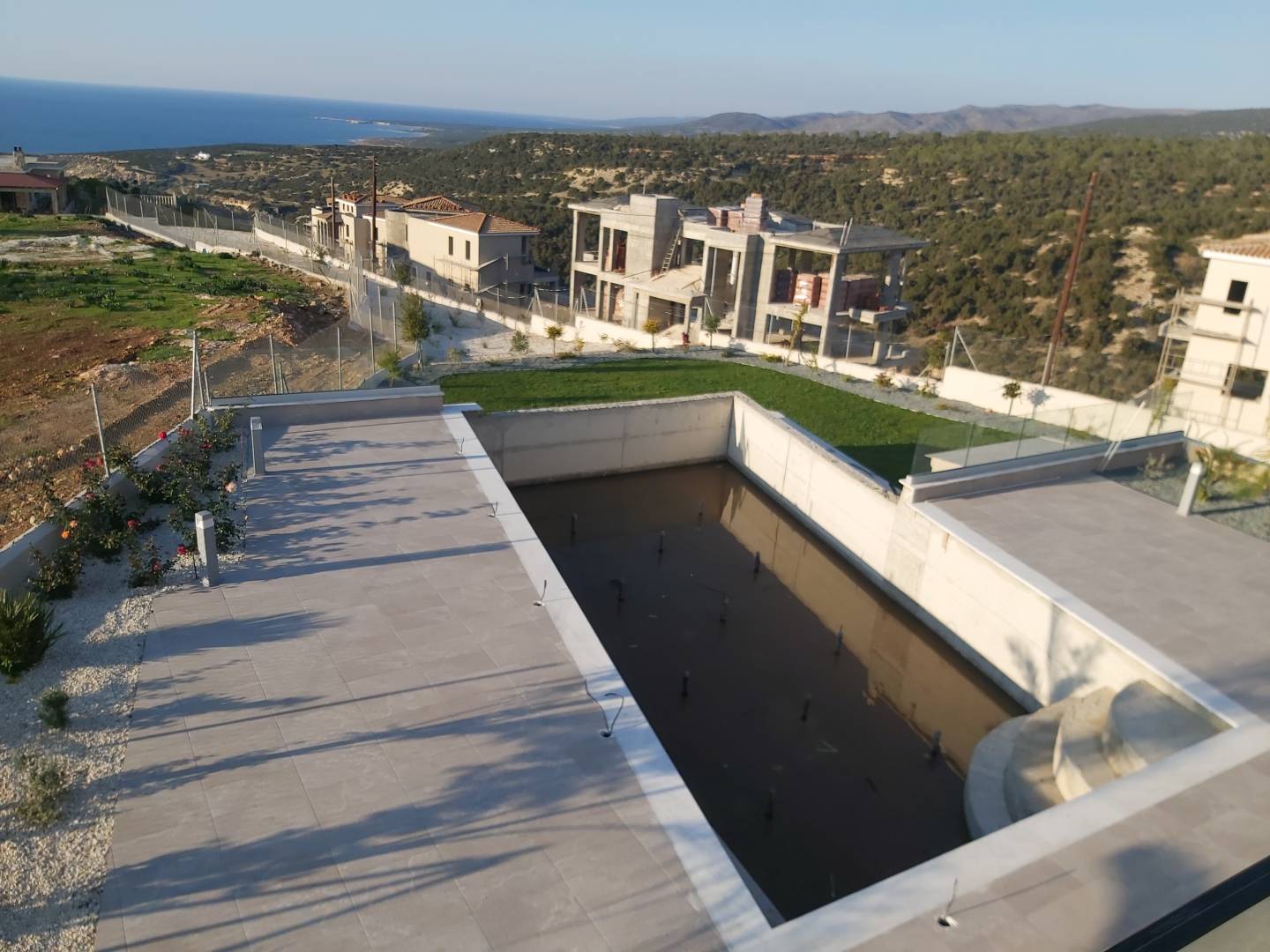 Продается новый 4-х спальный дом с панорамным видом на море, расположенный в районе Sea Caves, Пафос. Общая площадь земельного участка 3000 м2. В каждой комнате установлен кондиционер, полы с подогревом, двойные стеклопакеты. Благоустроенная территория с бассейном, зонами для отдыха и барбекю. Сад на крыше. Весь дом находится по охраной. Собственная водяная скважина. Титул.