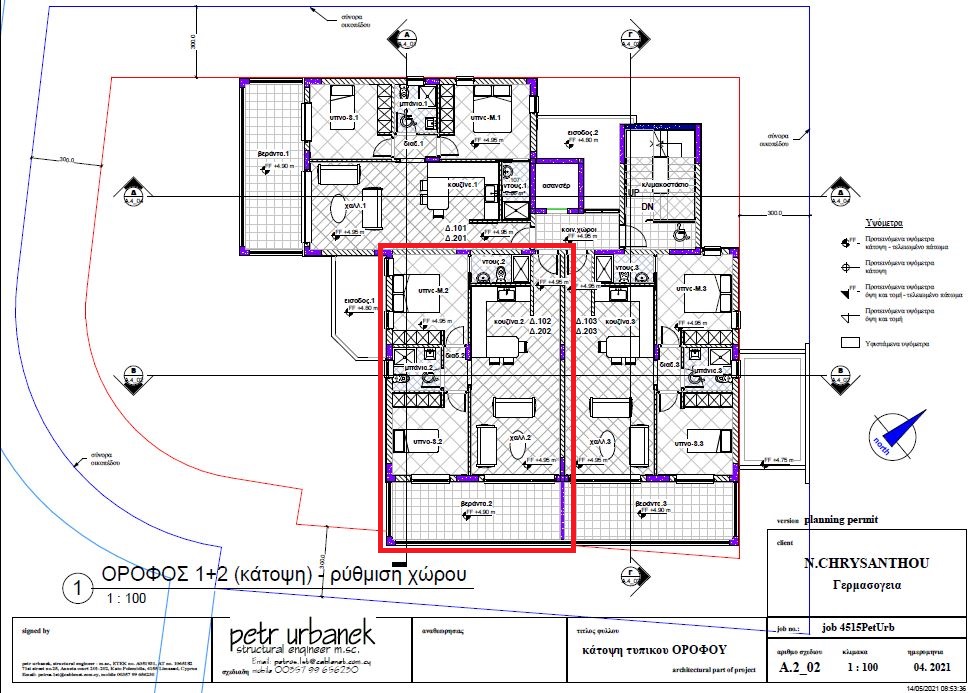 Просторная квартира с двумя спальнями в строящемся доме. Жилая площадь 75 м2, балкон 25 м2. Гостиная+кухня, две спальни, ванная и гостевой туалет. Здание находится в стадии строительства, будет сдано примерно через 1,5 года. Расположено на холме Паниотис, в роскошном жилом районе Гермасойи. Отсюда открывается прекрасный вид на море и город. Здание возводится рядом с зеленой зоной, в районе располагаются виллы и частные дома. У здания три этажа. На первом уровне размещаются парковочные места и кладовые для каждой квартиры, на втором и третьем уровнях расположены по три квартиры с двумя спальнями каждая.
