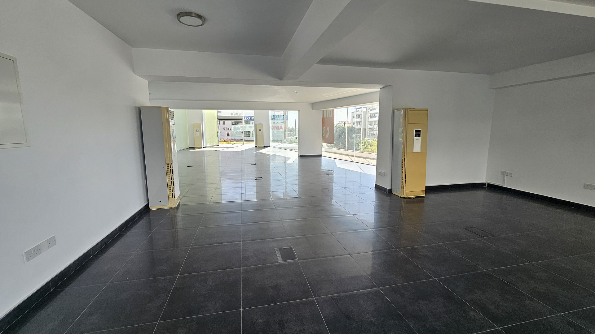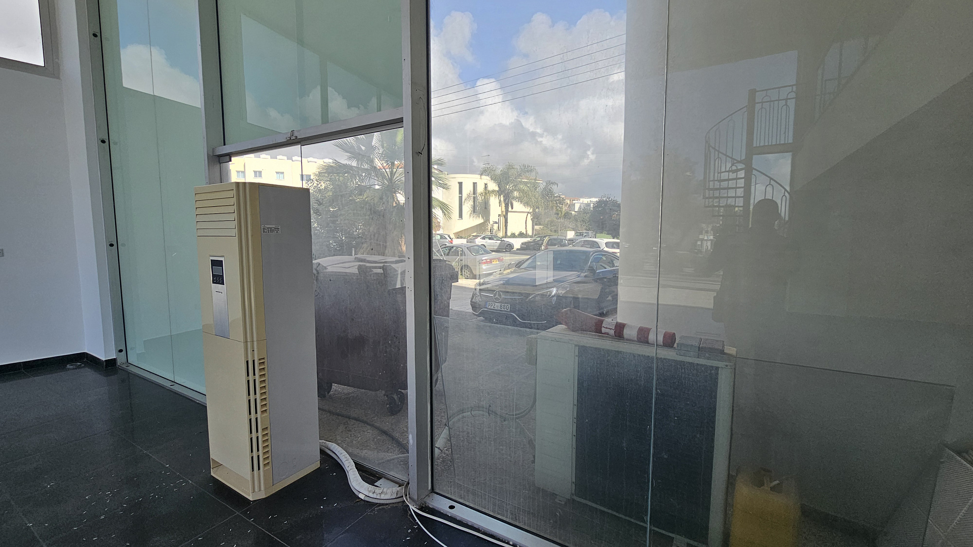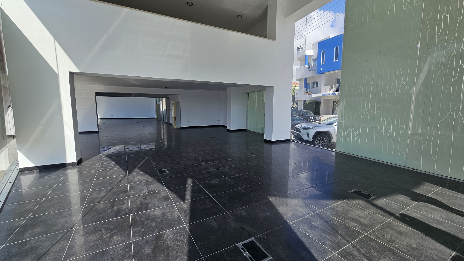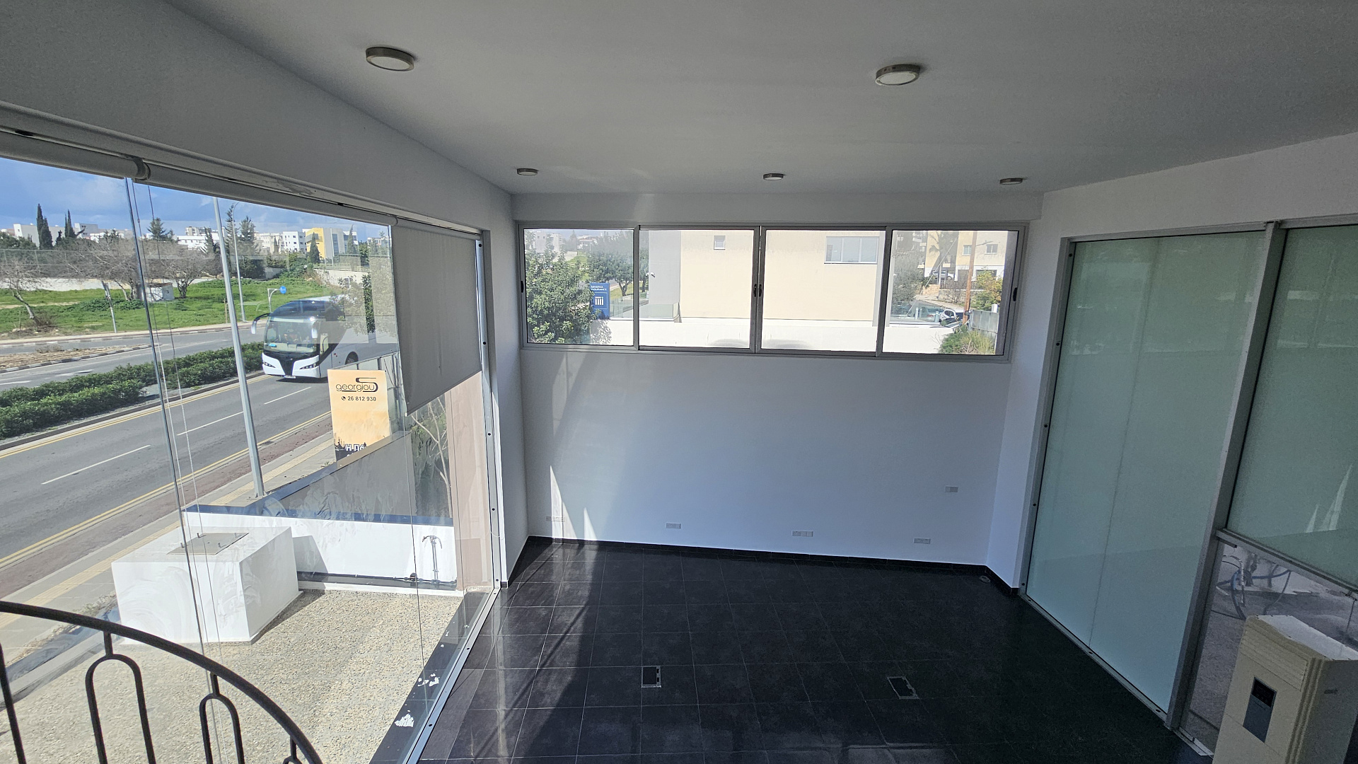 Modern office space of 370 m2 with underground parking for rent in the center of Paphos. The office is located on the ground floor of a modern, well-maintained building in one of the most prominent and convenient areas of the city. The room has excellent visibility and convenient access for customers, secure underground parking for employees and visitors, stylish modern architecture with a full-height glass facade. Ideal for corporate offices, showrooms, clinics or financial institutions.