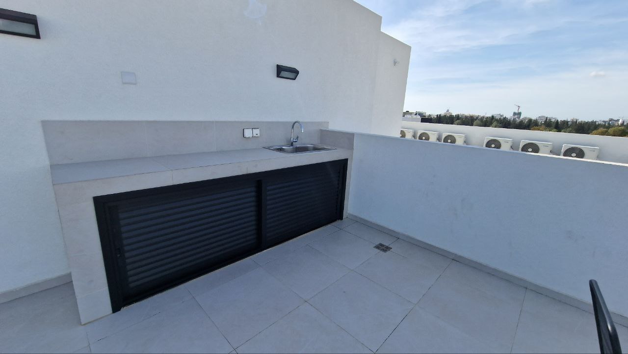 3 bedroom penthouse for rent with barbecue area on the roof in the area of Agios Nicolas, Limassol, 800 meters from the waterfront, 900 meters from the circle of Agios Nicolos and Makarios Avenue. The residential building is located next to the public school. There are only 6 apartments in the building. The apartment includes an open-plan living room and kitchen, 3 bedrooms, a bathroom and a guest toilet, a large veranda, a small balcony and a barbecue area on the roof. The entrance to the roof is only through a spiral staircase from the veranda. The kitchen is equipped with a Bosh dishwasher, cutlery and kitchenware. There is a covered parking gate with a remote control and a storage room. Internet payment is included in the price. Utilities for the complex are included in the price. Without animals.