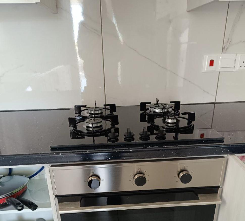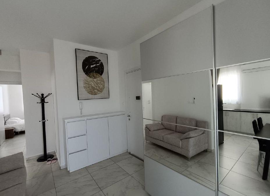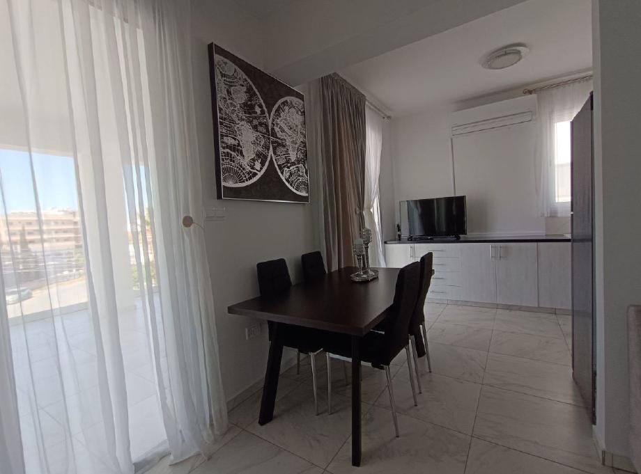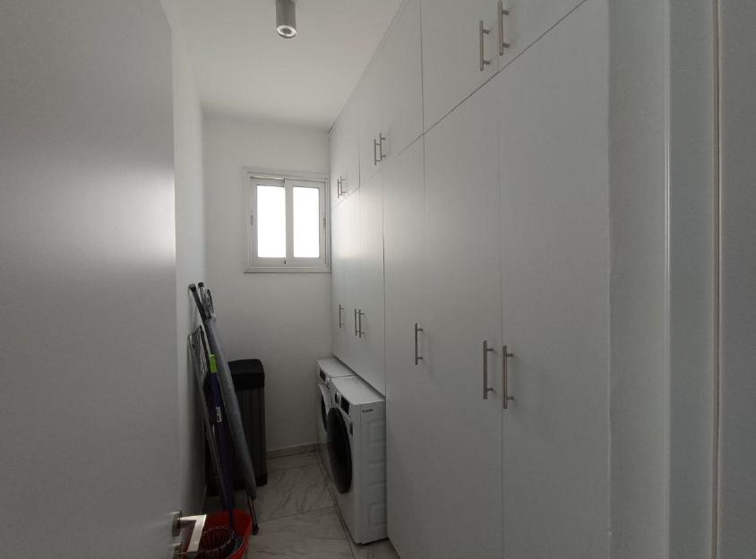 A 2-bedroom apartment for rent in the Agioi Anargyroi area of Larnaka. The building was constructed in 2023, and the apartment is located on the second floor of a four-story residence. The total area is 100 m², including a spacious 26 m² terrace. The apartment is fully furnished with brand new, cozy furniture. The modern kitchen is equipped with high-quality appliances, including a dishwasher, washing machine, dryer, gas stove with oven, and a wide black refrigerator. The kitchen is fully stocked with dishes and all essentials for cooking. There is a separate laundry room with extra storage space, as well as a spacious bathroom with a bathtub.