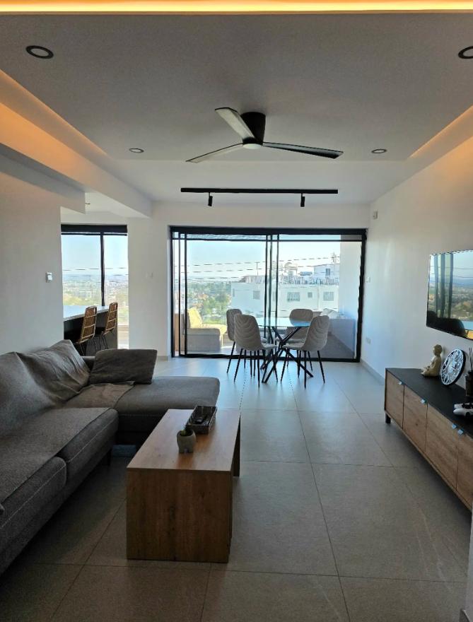 2 bedroom fully furnished apartment of 80 m2 for rent in Agia Fyla, Limassol. The apartment has a covered veranda of 15 m2. The apartments are equipped with air conditioning, underfloor heating, electric shutters, photovoltaic panels (~2 kW per apartment), ceiling fans in all rooms. The kitchen has a fire alarm system. In addition, the apartment has Bosch household appliances: refrigerator, freezer, oven, microwave, dishwasher, dryer, washing machine, induction hob, hoods. The apartment also has a storage room. Parking is provided for cars.