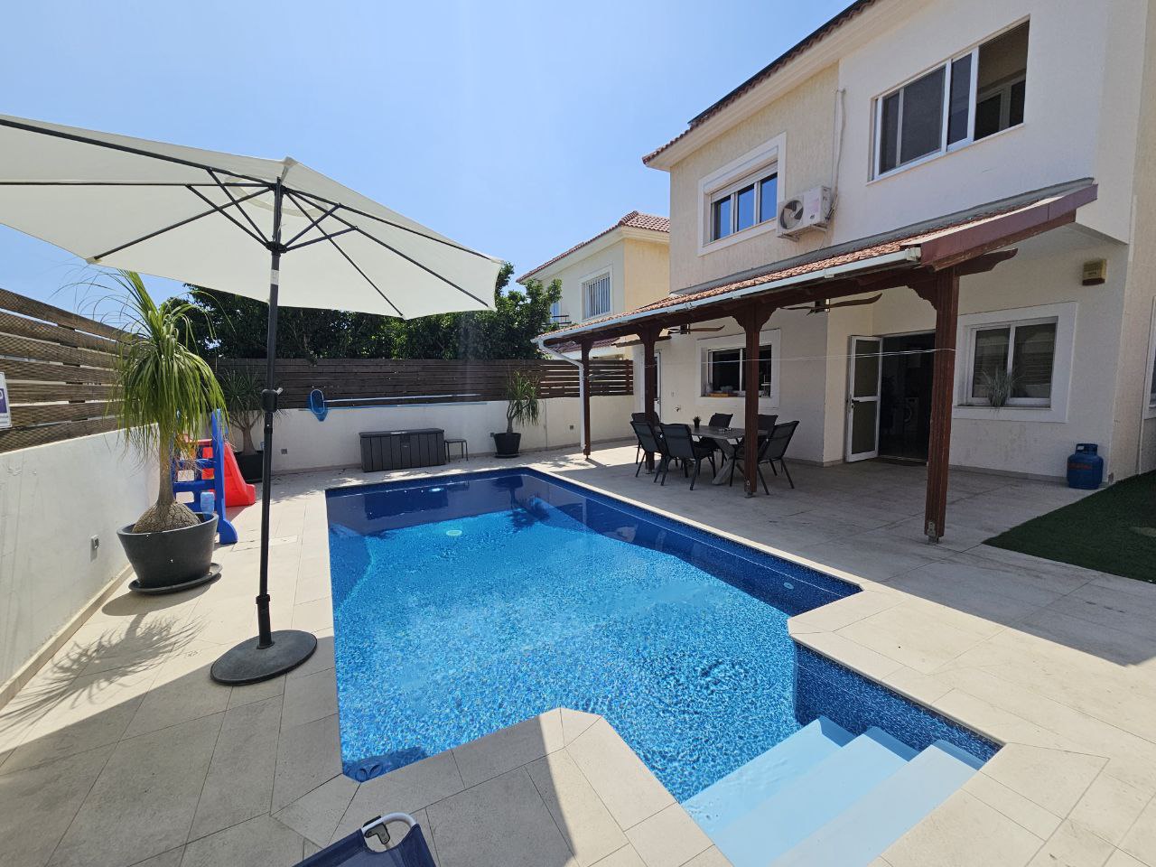 A four-bedroom house for rent in the area of Agios Athanasios, Limassol. The plot has a garden, a swimming pool and a gazebo. The house is equipped with a photovoltaic system, which allows you to practically not pay for electricity. It is equipped with household appliances, air conditioners are installed. It is offered fully or partially furnished. There is an outdoor parking lot. Very close to Foleys School and conveniently located gymnasium.
