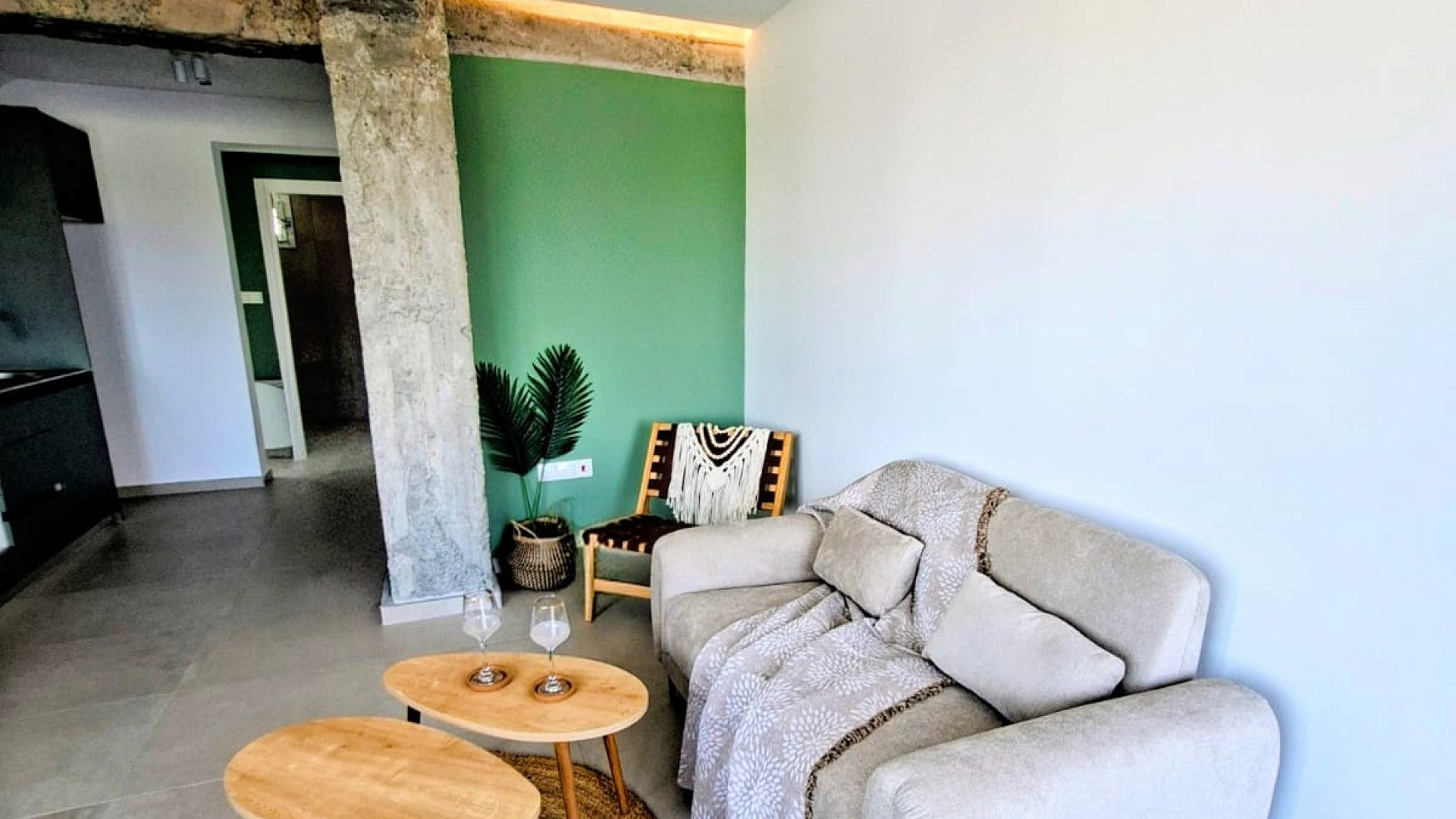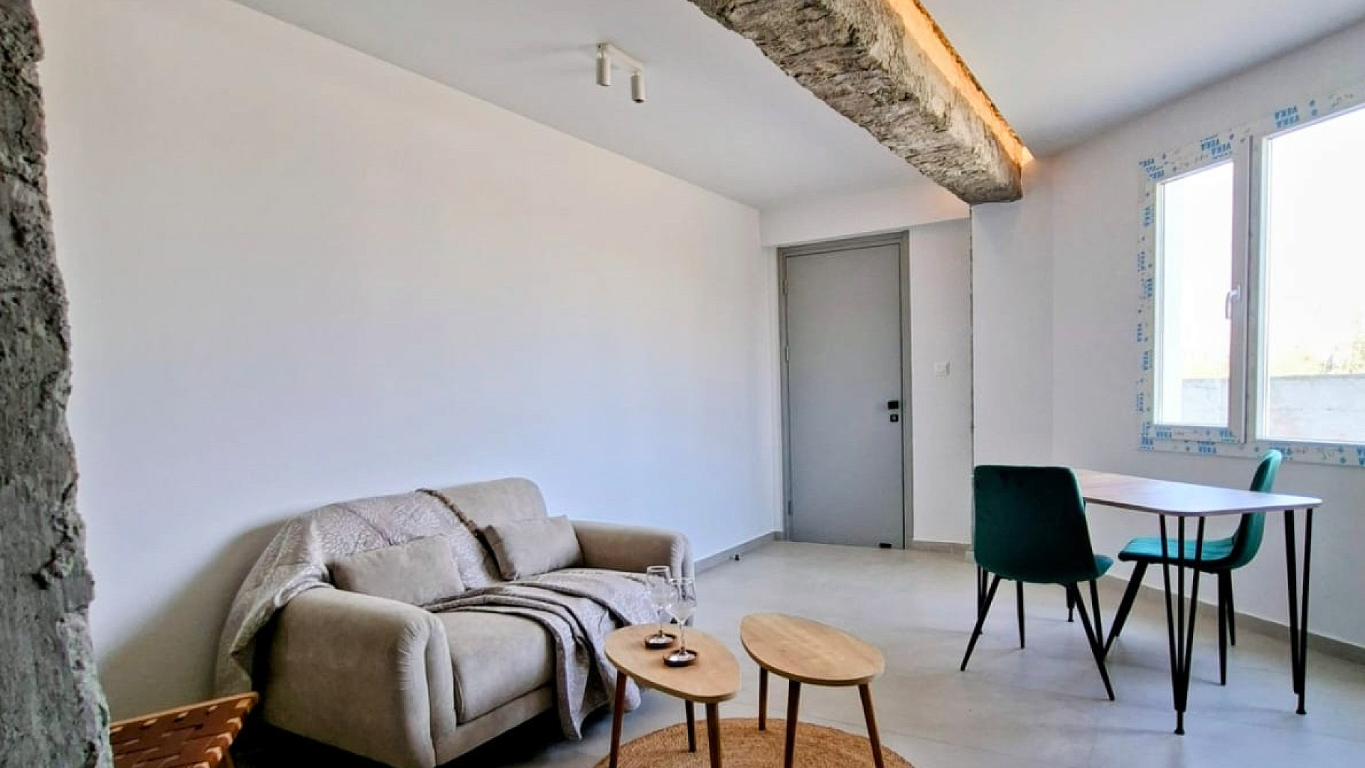 A one-bedroom apartment is available for rent in the Aglantzia area of Nicosia, located in a new residential complex with hotel-style services. The apartment will be ready for move-in from September 1st. Additional services such as laundry and ironing are available for an extra fee.