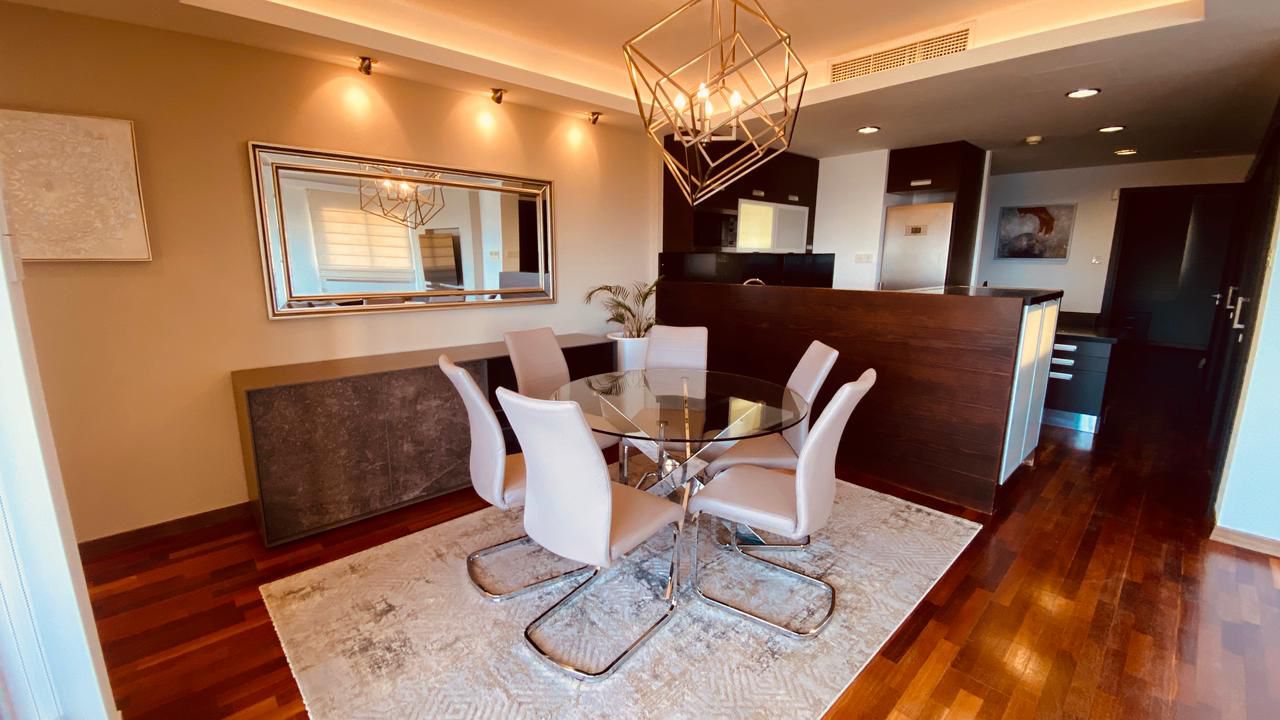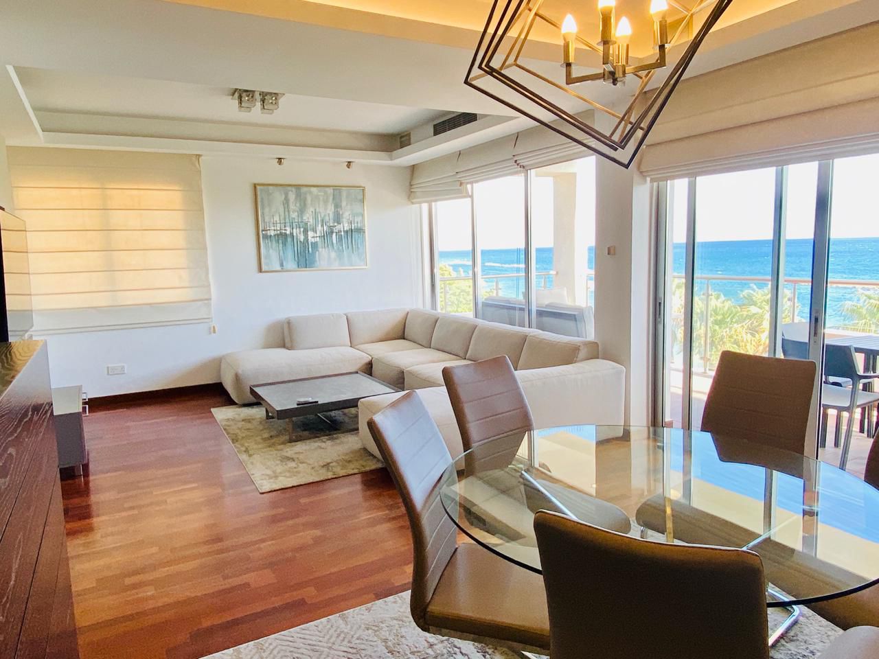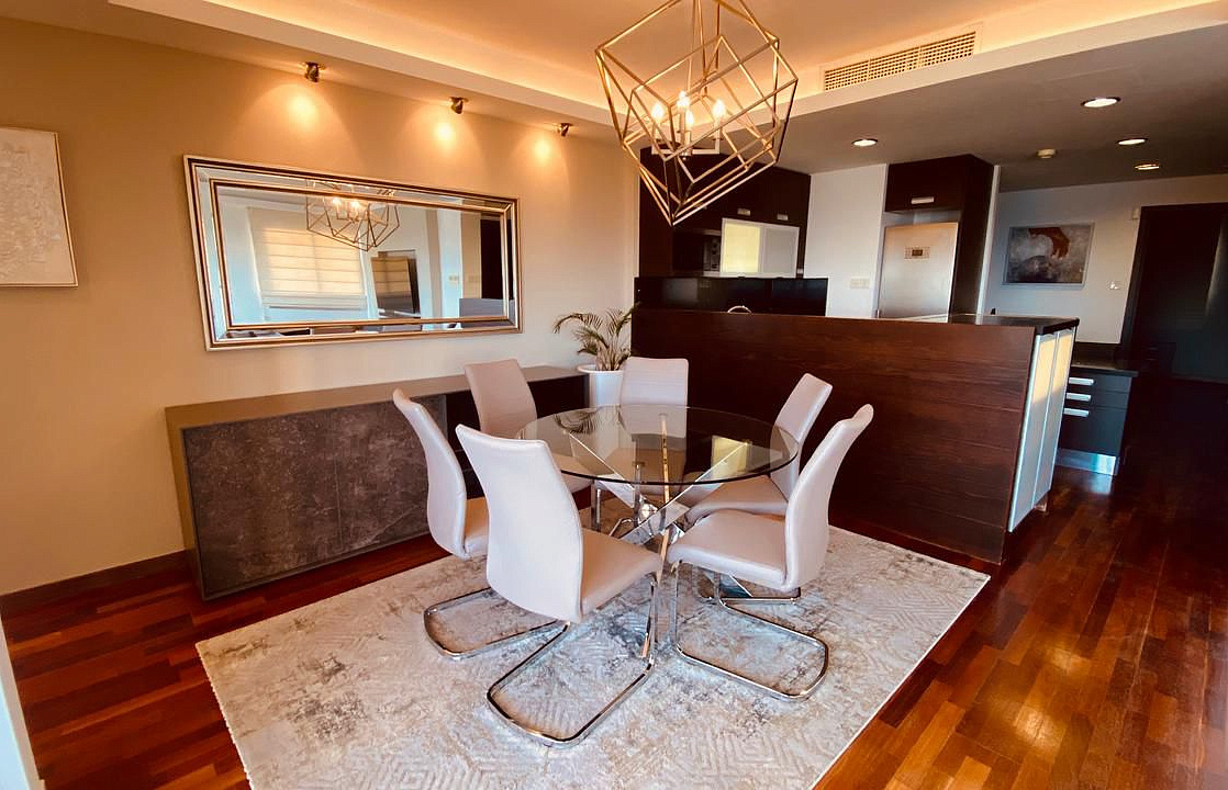 A 2-bedroom apartment for rent in the Agios Tychonas area of the Four Seasons Hotel. The total area is 100m2, the living area is 85m2, the covered veranda is 15m2. The apartment is located on the 4th floor, there is 1 open parking space. Pets are not allowed.