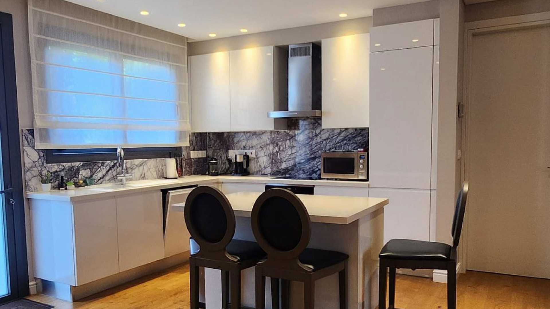 3 bedroom apartment for rent in an elite complex, in the area of Agios Tychonas, Limassol. Project features: A small-sized residential new complex with a closed territory. 24/7 security - round-the-clock video surveillance cameras and a guard post at the entrance to the territory. Underground Parking, 2 parking spaces. A large and safe playground. Fitness room and sauna. A communal swimming pool. This apartment is located on the ground floor