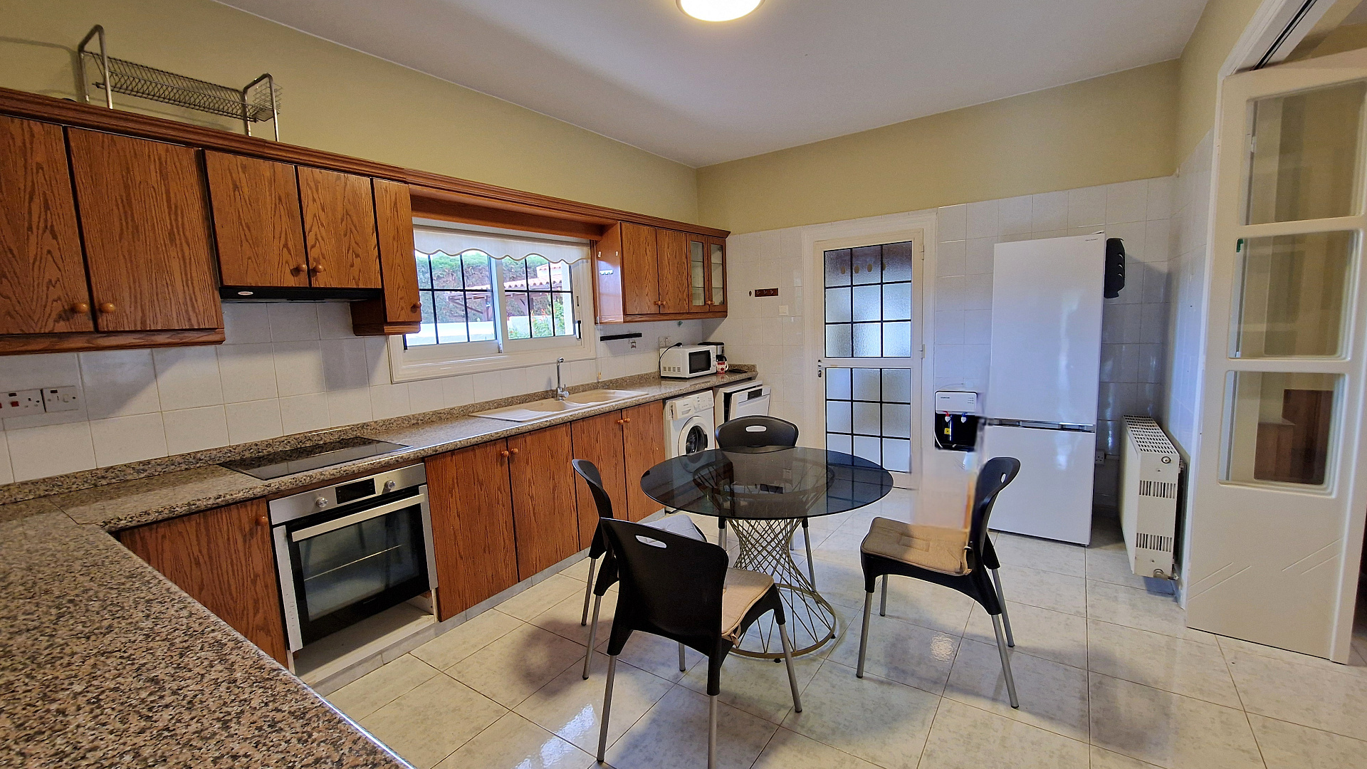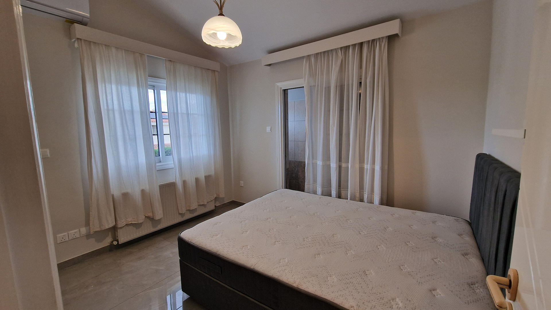 Two-storey 4-bedroom house with an area of 215 m2 for rent in the area of Dhekelia, Oroklini, Larnaca. The house includes three bedrooms, several bathrooms, a kitchen, a living room, a balcony and a spacious courtyard with a garden. The residence is fully furnished and equipped with air conditioning in all rooms, as well as a security system. There is a covered parking space on site. The property is located in a quiet area, within walking distance of all necessary amenities. There is solar photovoltaic panels 6 kW, low electricity bills.