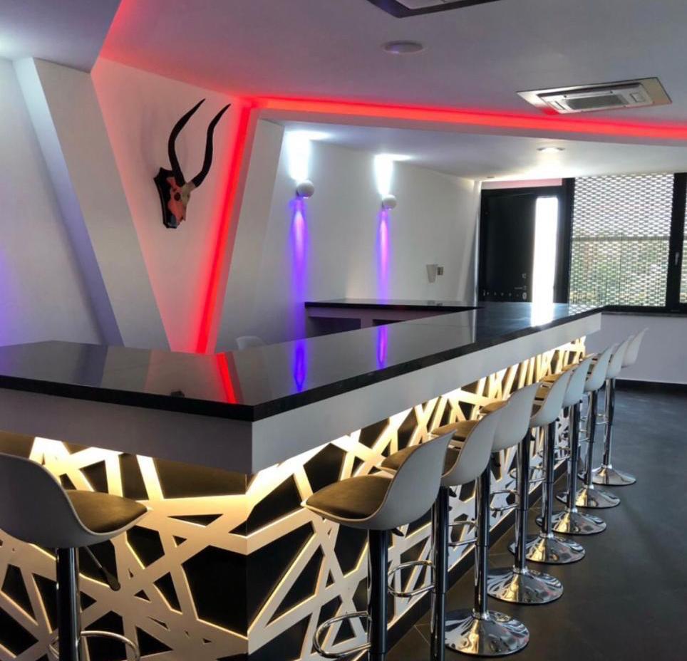 7 bedroom villa of 610 m2 for rent in Kolossi area, Limassol. The villa includes 7 bedrooms, more than 5 bathrooms, a spacious living room, a kitchen, an attic/loft, a game room, a fireplace, storage rooms and relaxation areas. The property is fully furnished and equipped with modern appliances and equipment: air conditioning in all rooms, alarm system, CCTV cameras, Jacuzzi, sauna, professional bar inside the house and pool bar, library, separate dressing room, aquariums and waterfall. There is a swimming pool on the plot, the maintenance of which is included in the rental price. Covered parking is provided for cars. The villa is located in the historic village of Kolossi, just 10 km from the center of Limassol and a 2-minute drive from the central highway, on a quiet and secluded street. There are supermarkets, fruit and butcher shops, bakeries, pastry shops, pharmacies, banks, churches, hairdressers and restaurants within walking distance.
