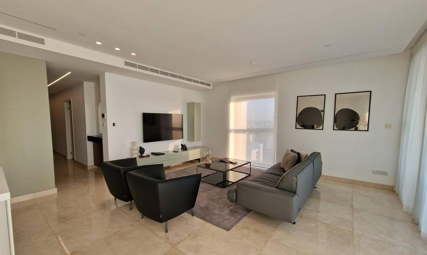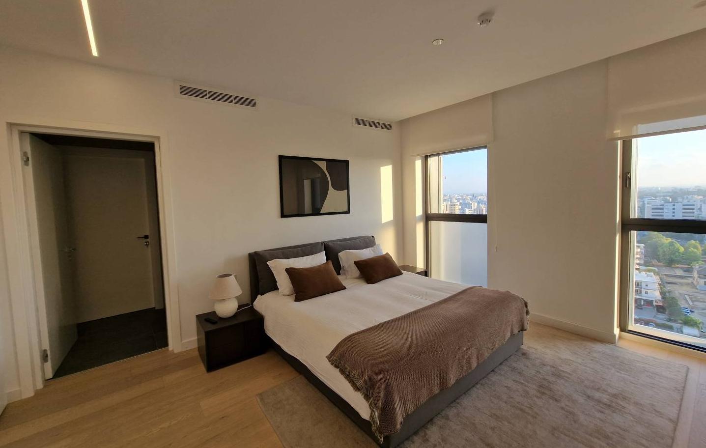 For rent fully furnished 3 bedroom apartment of 178 m2 in a central high-rise in the area of Town Center Nicosia, Nicosia with stunning views of the mountains and the surroundings of the capital. Modern finishes with high-end materials, furniture in all rooms, pastel linen and towels, kitchen, kitchenware, all necessities, washing machine, dryer, iron, ironing board, hair dryer, etc. The complex has a Jacuzzi, gym, sauna, relaxation room, underground parking. The high-rise is located in the very center of the city within walking distance from shops, restaurants, cafes, bars and offices.