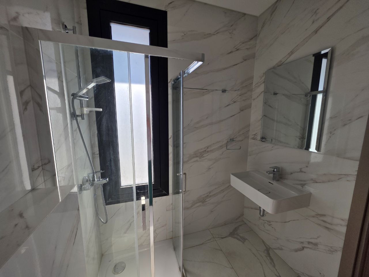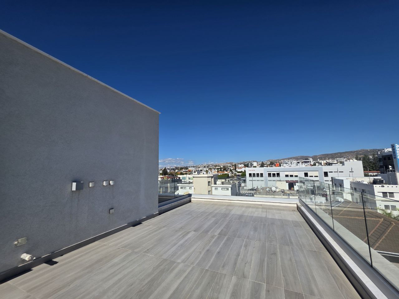 For rent, a two-bedroom penthouse in the Potamos Germasogeias area, Limassol, with a total area of 243 m² including verandas. The apartment is located in a building constructed in September 2022, fully furnished and equipped with air conditioning in all rooms, kitchen appliances, and a heating system. The penthouse features two bedrooms and two bathrooms. The building consists of five apartments and includes an elevator, alarm system, balconies, a storage room, and a garden. Covered parking is available. The property is situated opposite the Sklavenitis supermarket.