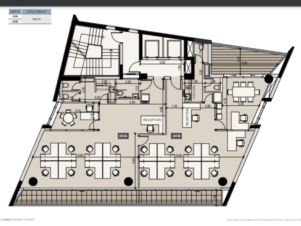 An office for rent in a new premium commercial building in the business center of Limassol. The internal area is 206 m2, 41 m2 veranda, 4 Parking spaces. The five-storey complex consists of 5 luxury offices, one on each floor, which provides ample space. Spacious layouts. Designed by London's leading architectural and design studio. Exquisite modern design. Spacious professional work areas. Easy access to modern infrastructure and amenities. The floors and walls in the toilets and bathrooms have ceramic tiles. High ceilings (3.20 m). Provision of VRV. High-quality plumbing of European brands. Thermoaluminium window frames with double glazing.