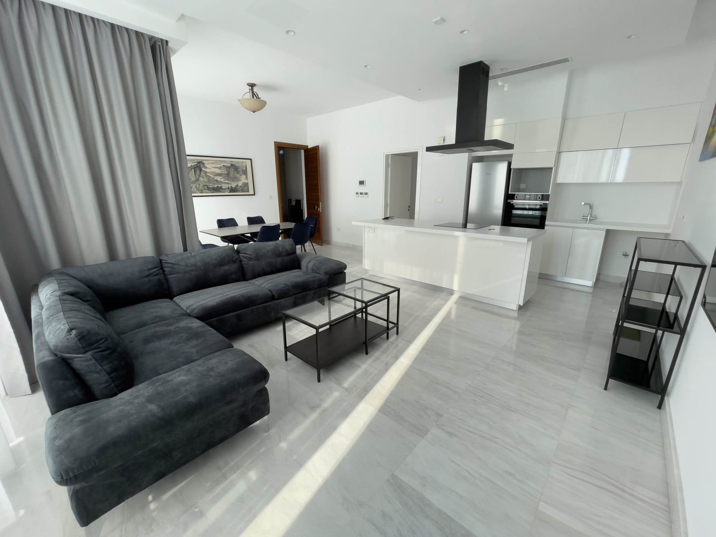 For rent, a two-bedroom apartment in Potamos Germasogeia, Limassol, with two bathrooms, totaling 124 m² on the 4th floor, just 500 m from the beach and 1 km from the school. The apartment is fully furnished and equipped with modern appliances, featuring an open-plan layout that combines a bright living room with a dining area, a spacious kitchen, and a large veranda. Modern technologies include a climate control system with underfloor heating and VRV air conditioning. The area combines a coastal lifestyle with convenient infrastructure: shops, schools, cafes, and public transport stops are within walking distance. Built in 2018.