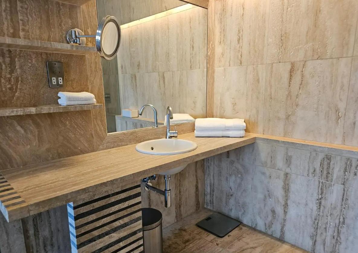 Two bedroom apartment for rent in Potamos Germasogeia Tourist Area, Limassol. The total area is 120 m2, located on the sixth floor, fully furnished, with air conditioning in all rooms. The apartment has two bedrooms, including the main one with a bathroom, as well as an additional bathroom for guests. There is a spacious living room with an open kitchen, high-quality travertino finishes, premium brand appliances, parking space, underfloor heating, a green area with access to a semi-private beach.