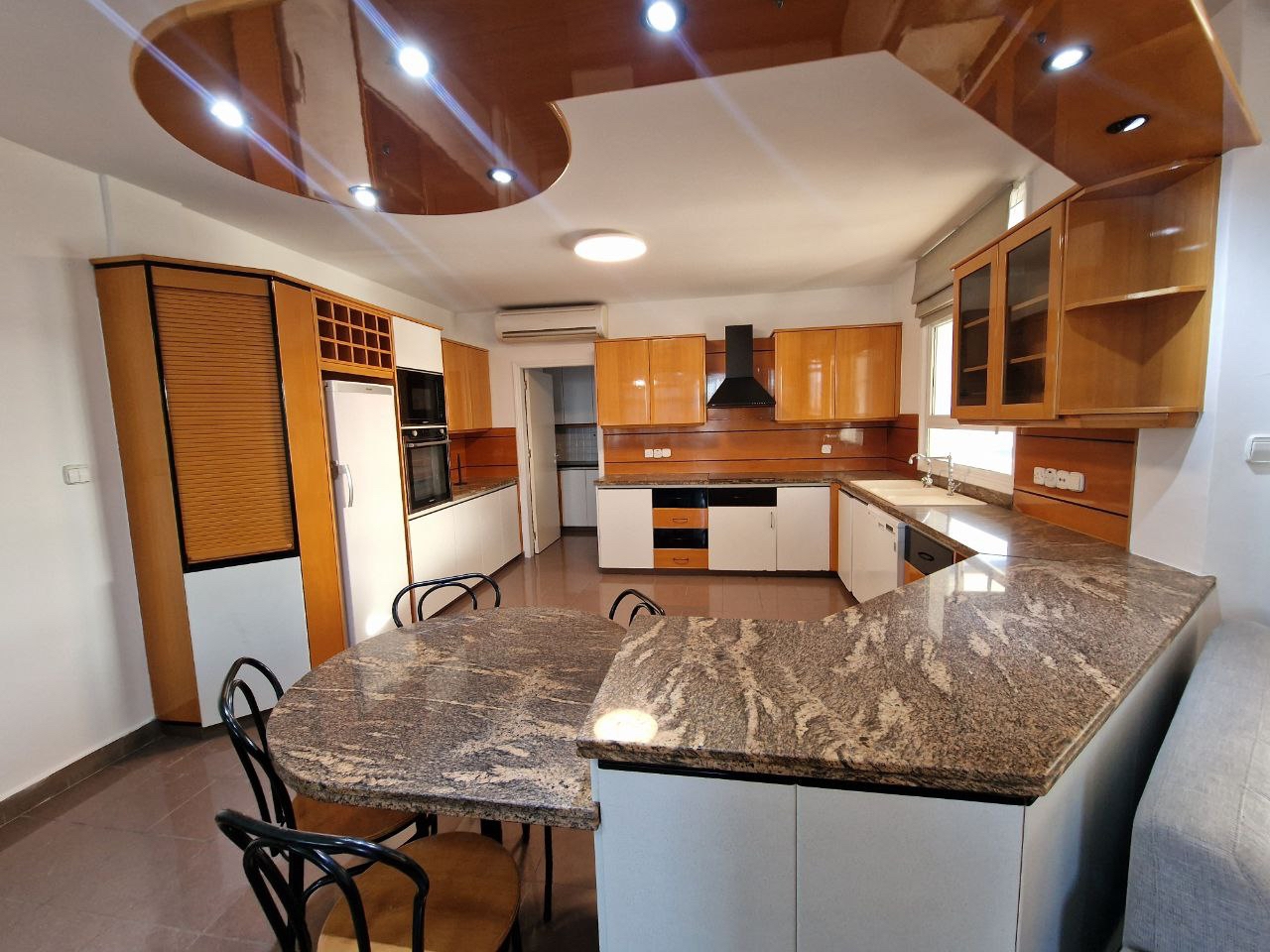 Duplex 3-bedroom apartment of 240 m2 for rent in the area of Agios Nikolaos, Larnaca. The apartments include a master bedroom with a bathroom and a dressing room, a spacious second bedroom, as well as two additional rooms that can be used as classrooms or children's rooms. The tenants have at their disposal a large main bathroom with a toilet and a separate guest toilet. A spacious living room, a dining area, an additional relaxation room and two balconies create a comfortable space for the family. The apartment is fully furnished, equipped with a modern kitchen with household appliances, air conditioning in almost all rooms and a central heating system. There is a covered parking space. The house was built in 1994. The property is located above a commercial premises, which provides privacy and at the same time walking distance to schools, bakeries, shops and all necessary infrastructure (2-5 minutes on foot).