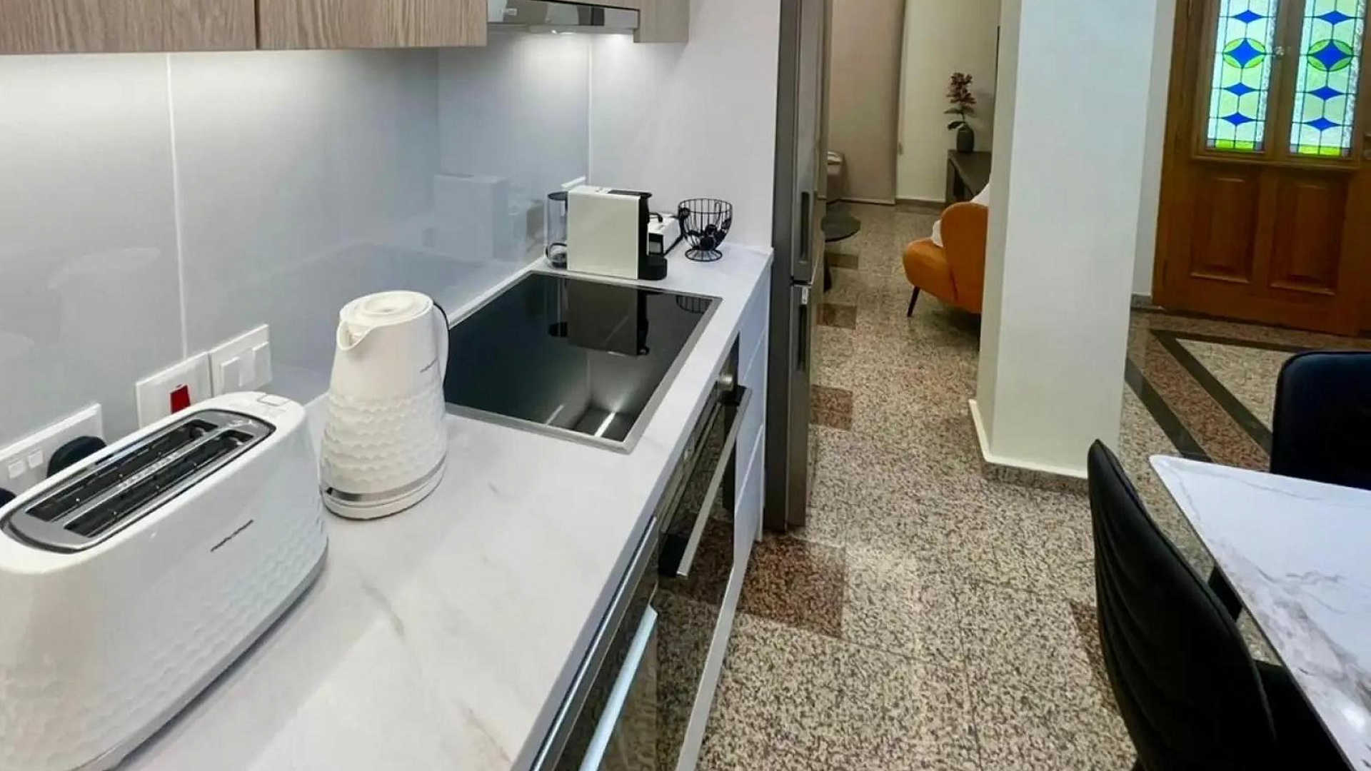 Two-bedroom apartment of 89 m2 for rent in the area of Agios Ioannis, Limassol. The apartment includes two bedrooms (one with a bathroom), a second bathroom, a modern kitchen, a spacious living room, a cozy veranda and access to the garden. The apartment is fully furnished and equipped with new appliances: a large refrigerator, stove, oven, dishwasher, washing machine and dryer. The living room has a large corner sofa and a 55ʺ smart TV. Each room has individual air conditioners. The residence is located on the ground floor of a well-maintained house with a beautiful garden, within walking distance from Limassol Marina and the city center. There is a pharmacy, supermarket and other amenities nearby. The property is fully renovated, equipped with everything necessary for a comfortable stay and allows pets.