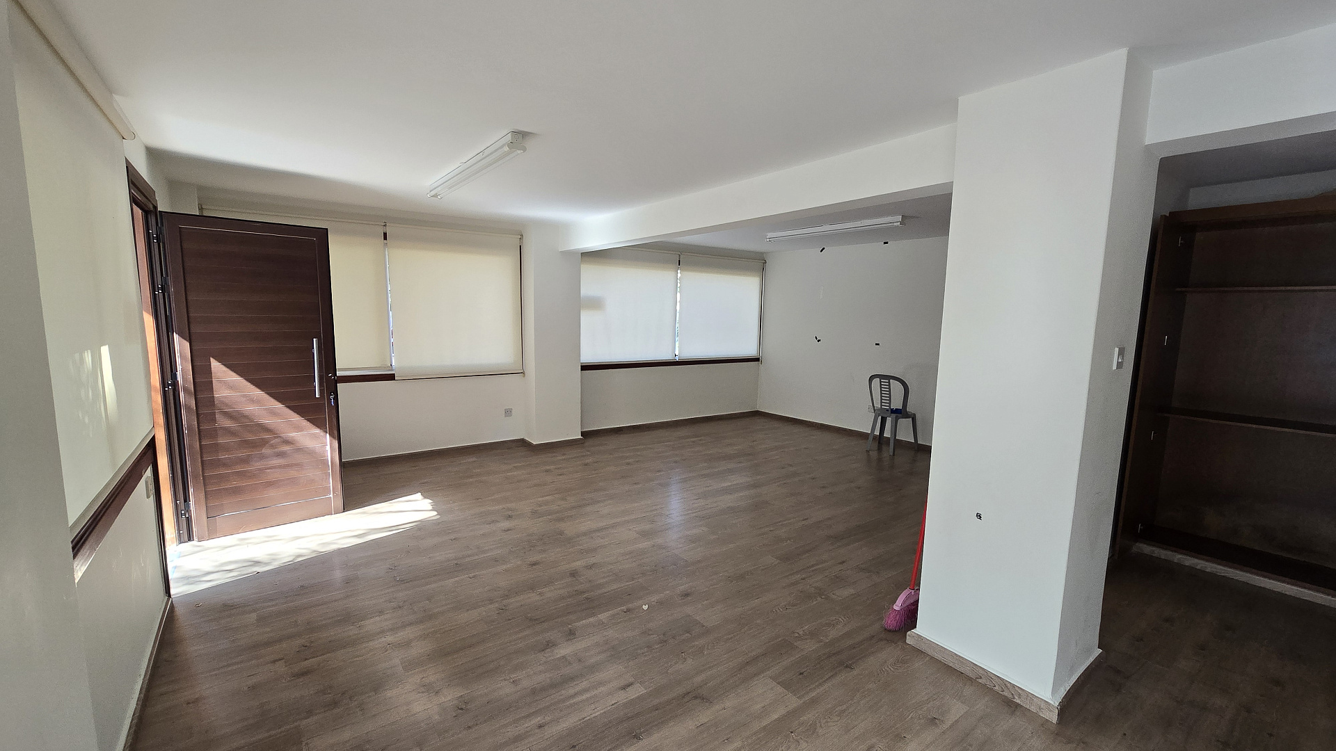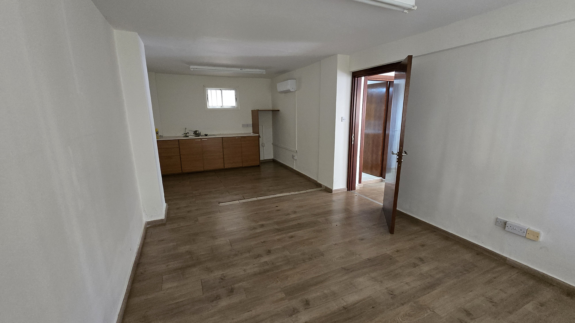 Office space of 100 m2 for rent in Neapolis, Limassol. The office is located on the ground floor. The property is provided with parking for employees and visitors.