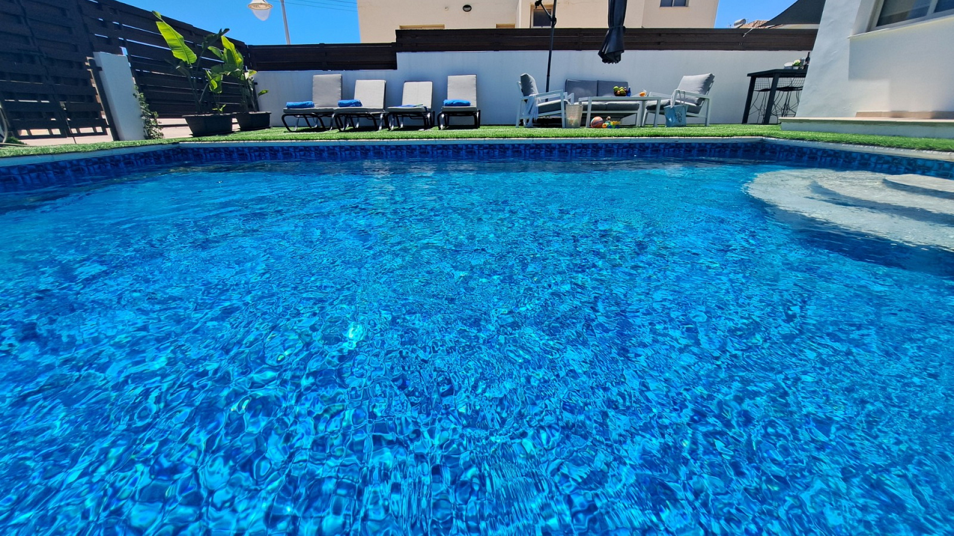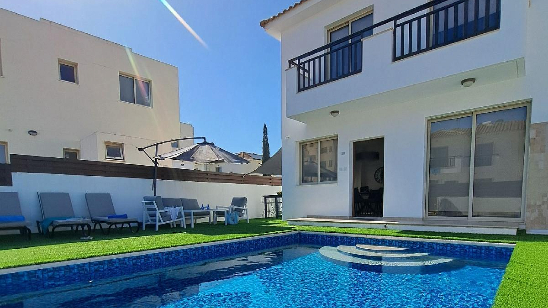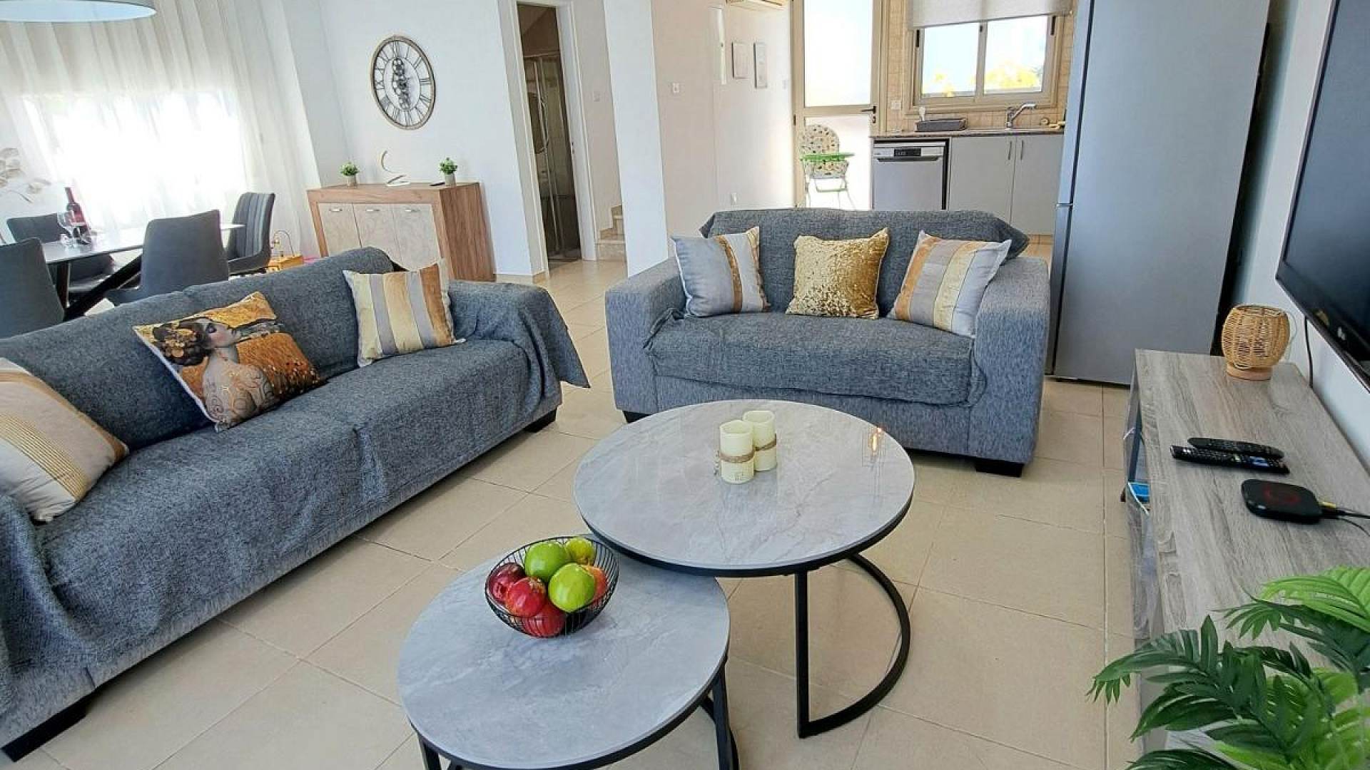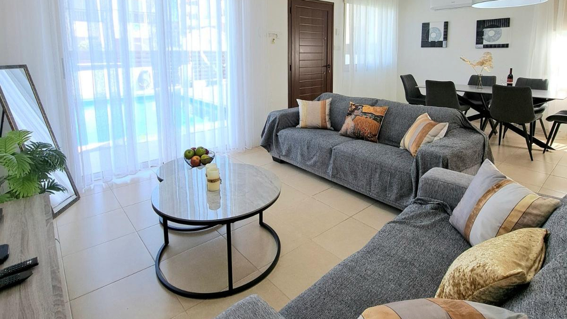 A cozy 3 bedroom villa with a private pool for rent is located in Pernera, Famagusta, just a few minutes walk from the sea and the popular Polyxenia beach. On the ground floor there is a living room, a fully equipped kitchen and a shower room, on the second floor there are two bedrooms and a bathroom. The villa is located in a well-maintained residential complex with a pleasant environment and a calm atmosphere, ideal for both leisure and long-term living.