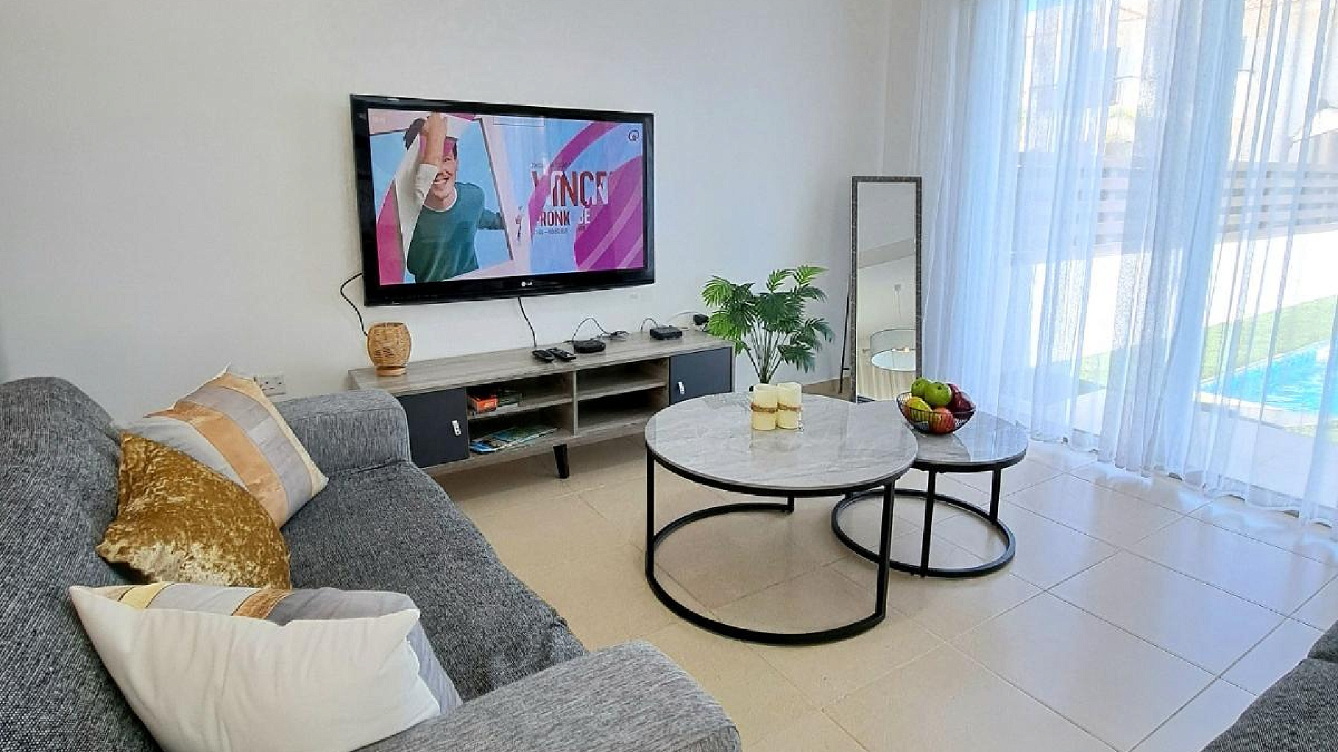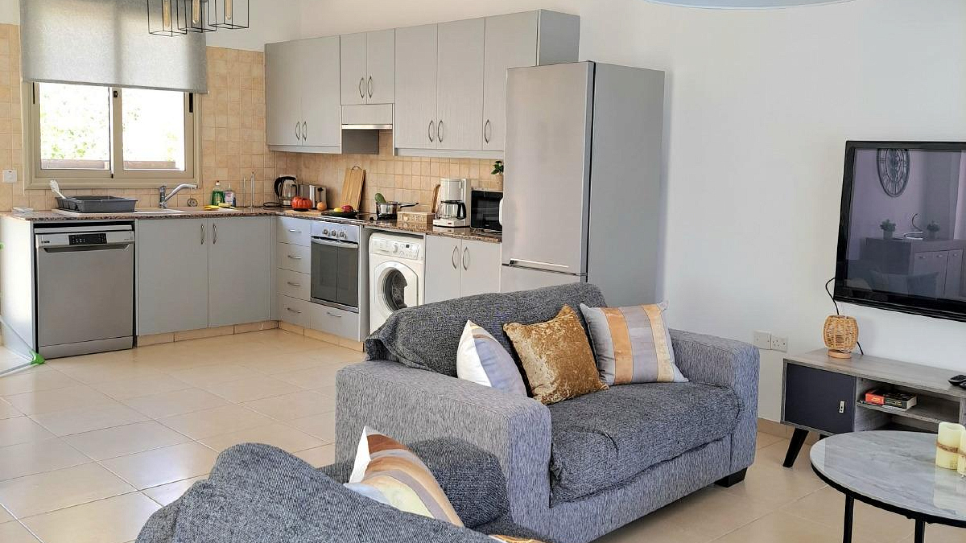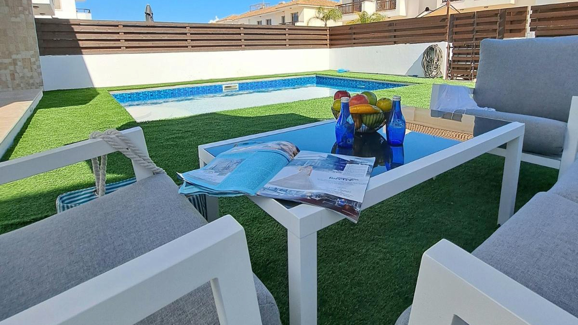A cozy 3 bedroom villa with a private pool for rent is located in Pernera, Famagusta, just a few minutes walk from the sea and the popular Polyxenia beach. On the ground floor there is a living room, a fully equipped kitchen and a shower room, on the second floor there are two bedrooms and a bathroom. The villa is located in a well-maintained residential complex with a pleasant environment and a calm atmosphere, ideal for both leisure and long-term living.