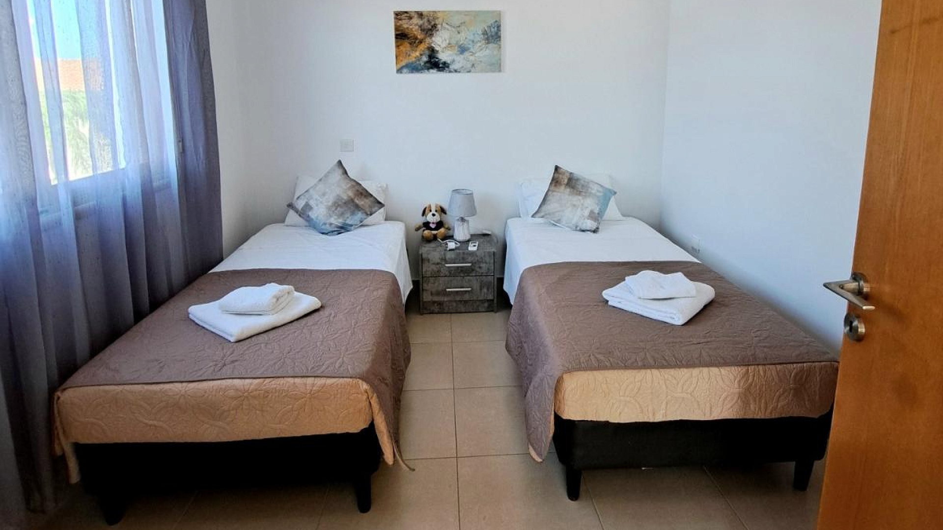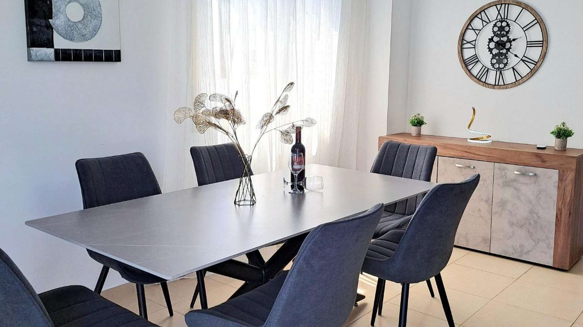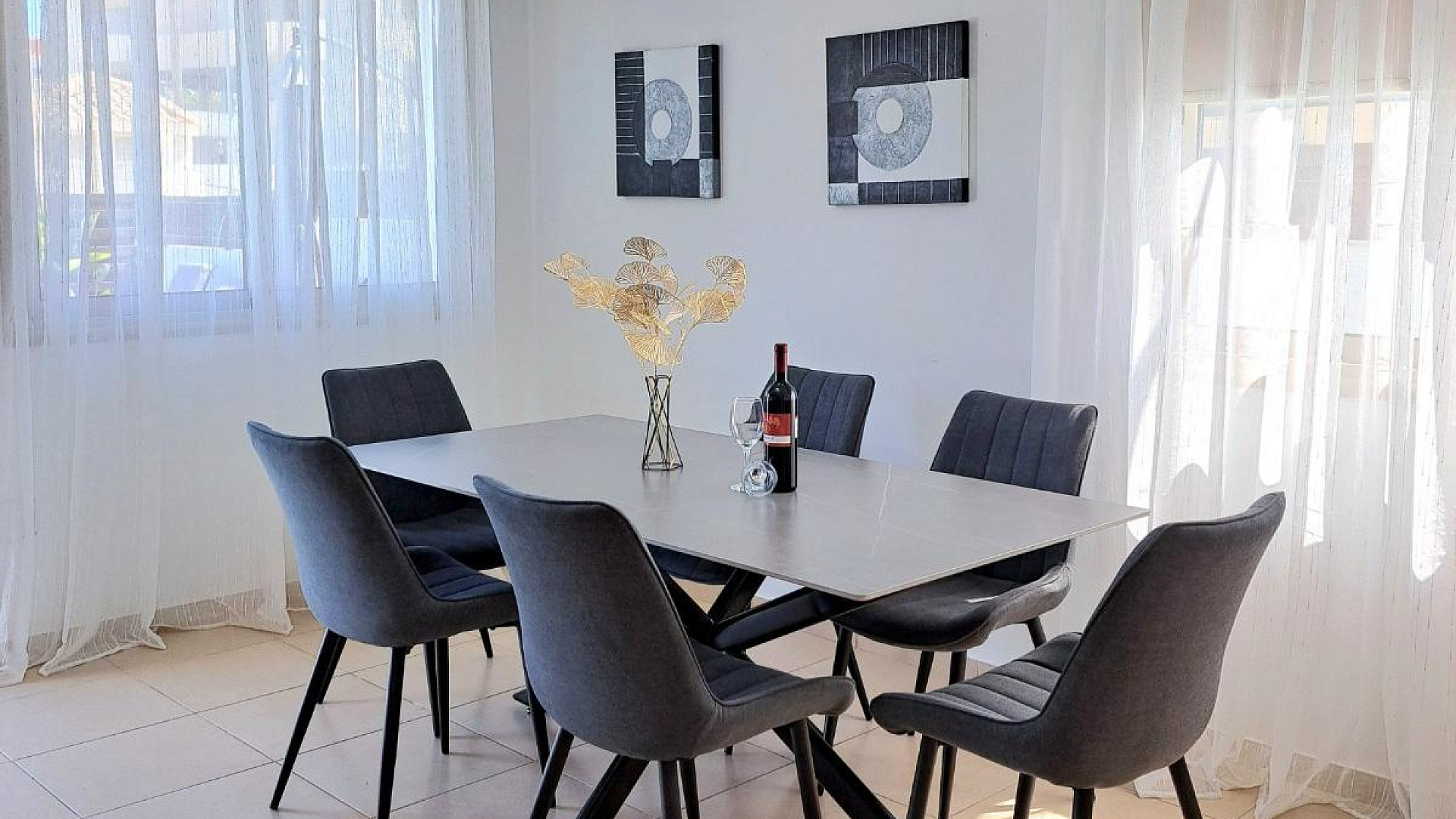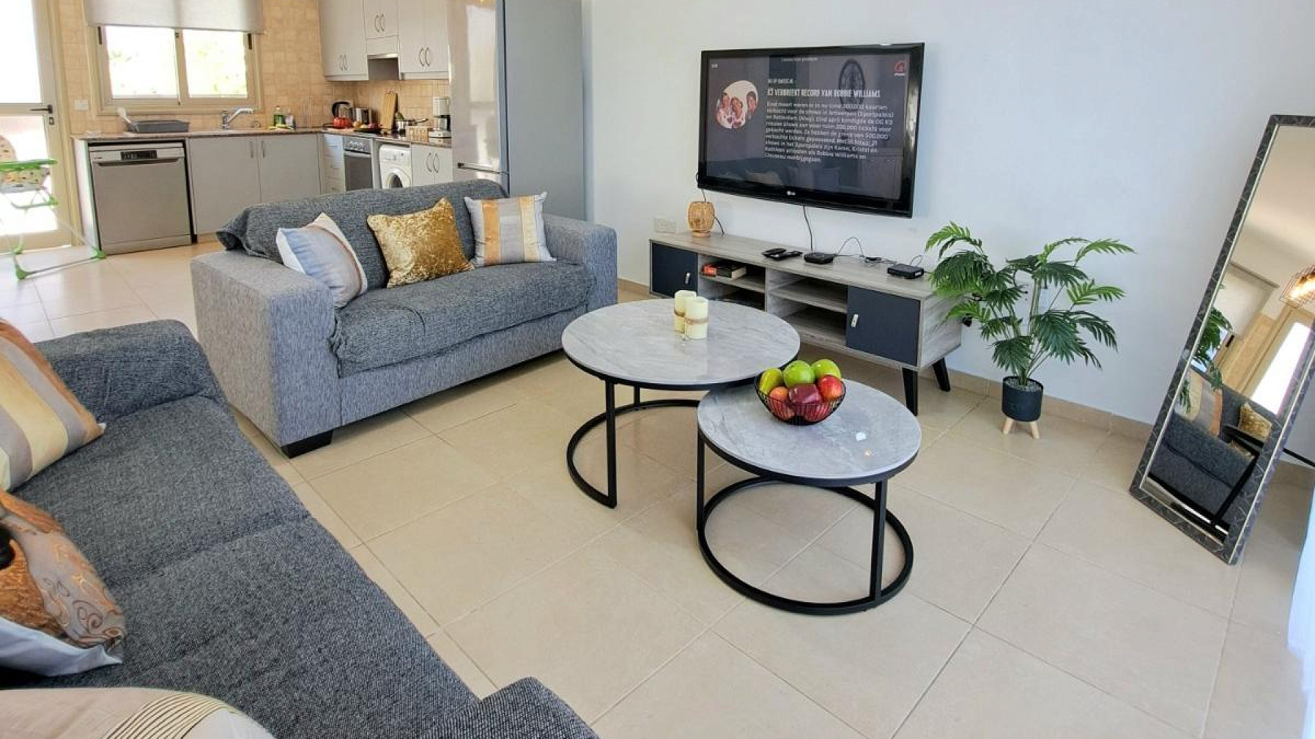 A cozy 3 bedroom villa with a private pool for rent is located in Pernera, Famagusta, just a few minutes walk from the sea and the popular Polyxenia beach. On the ground floor there is a living room, a fully equipped kitchen and a shower room, on the second floor there are two bedrooms and a bathroom. The villa is located in a well-maintained residential complex with a pleasant environment and a calm atmosphere, ideal for both leisure and long-term living.