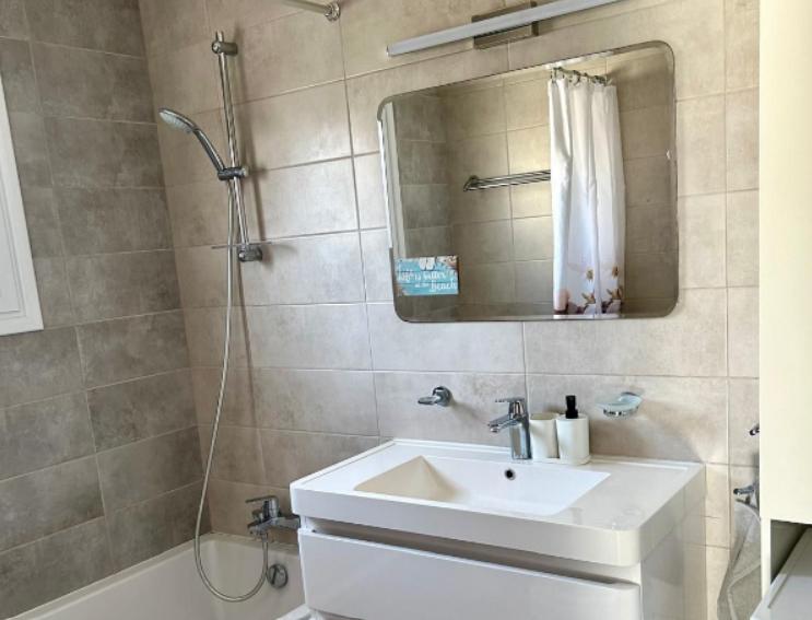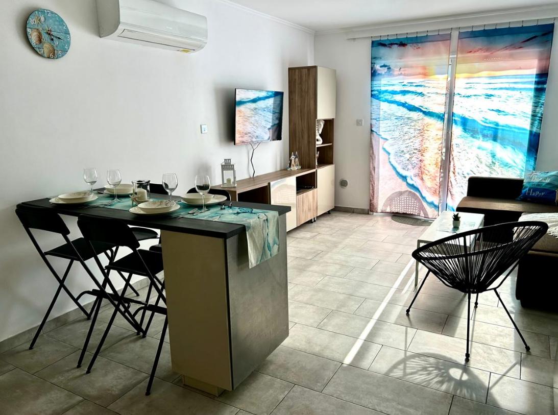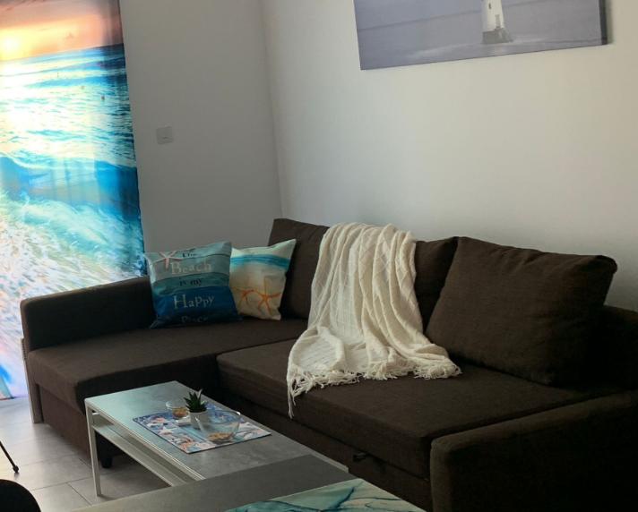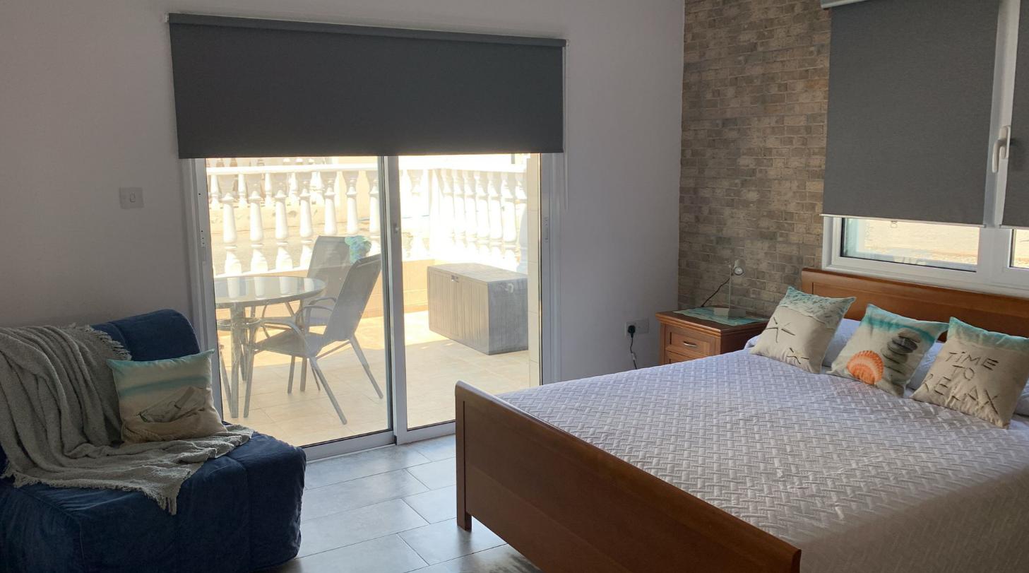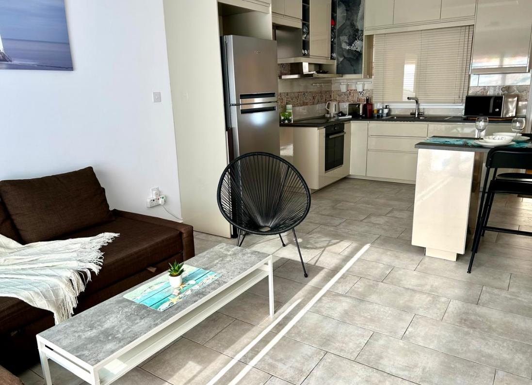 One-bedroom apartment for rent, within walking distance of the popular Niss Beach. It features a large veranda with an electric shade and access to a large communal pool. The apartment is recently renovated, fully furnished, and equipped with appliances.