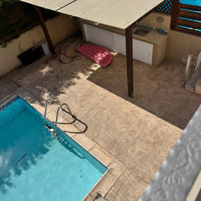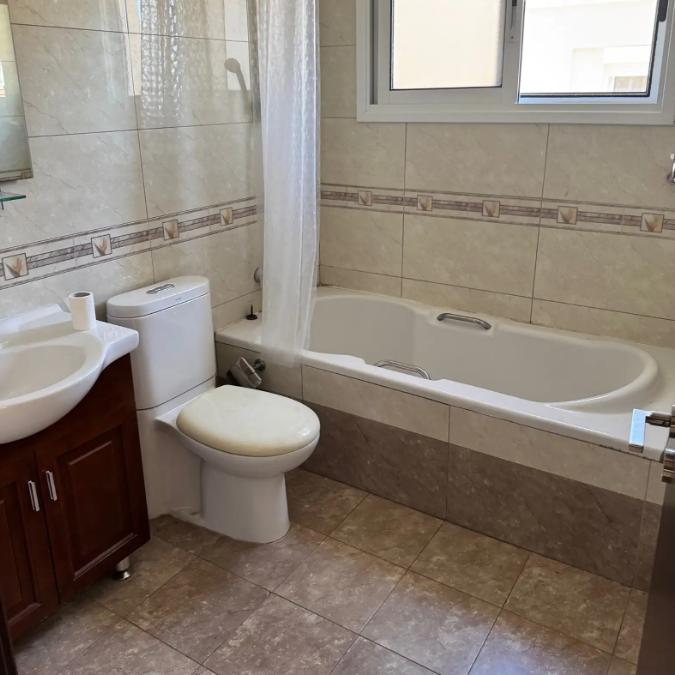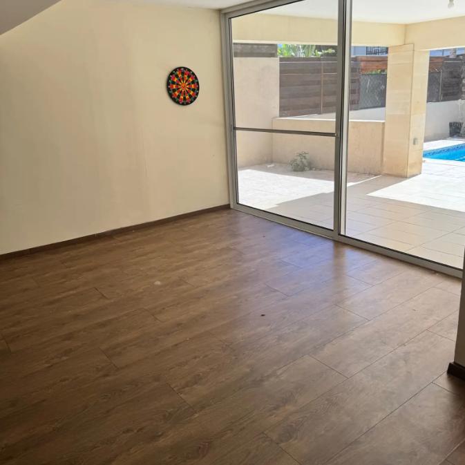 Spacious five-bedroom house for rent in Germasogeia Tourist Area Limassol with an area of 250 m2. The house was built in 2008 and is equipped with an air conditioning system in all rooms and central heating. There are five bedrooms and four bathrooms, a games room, a swimming pool, a garden, balconies, a storage room and a covered parking. The house is rented with installed kitchen appliances, unfurnished.