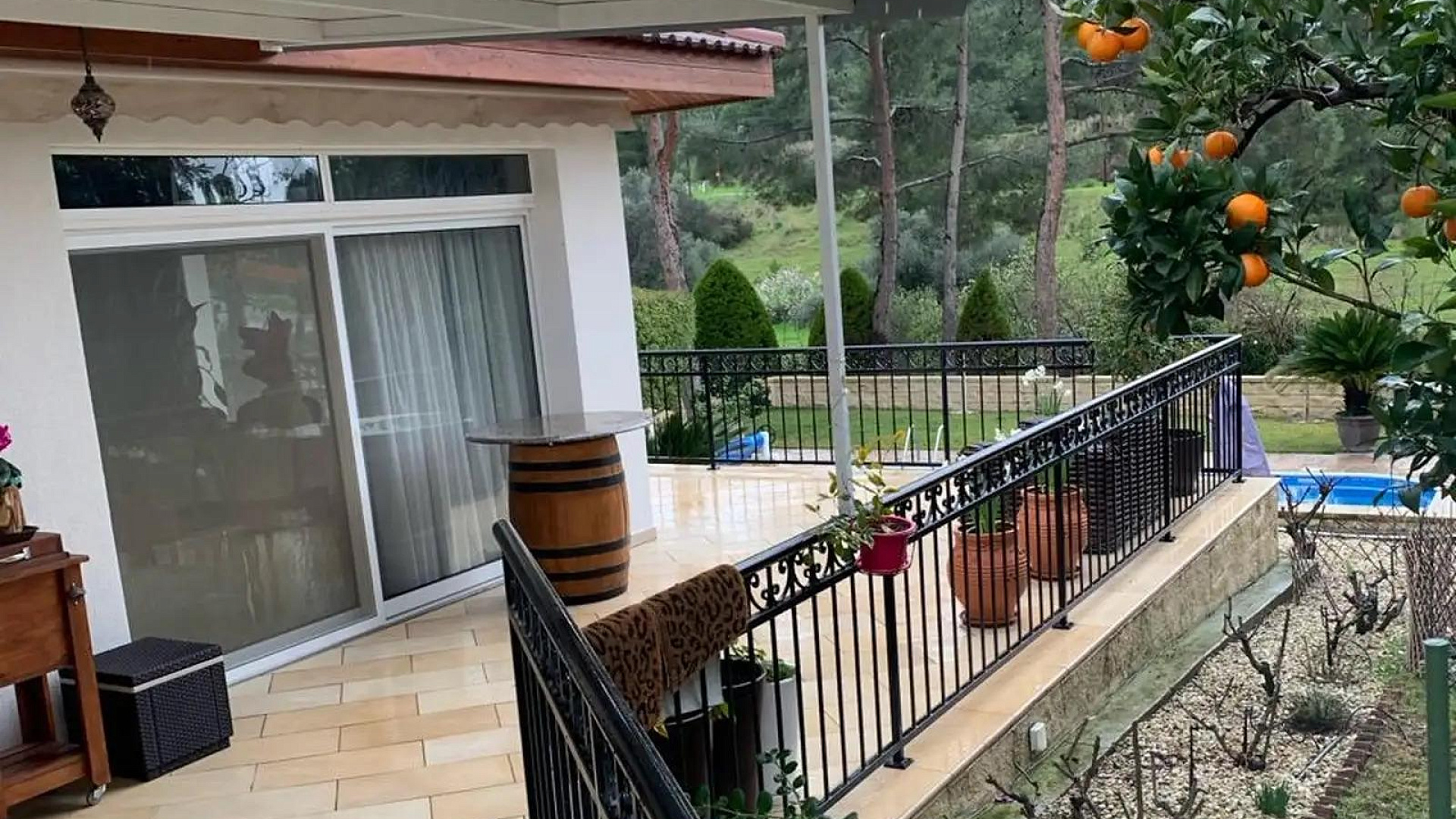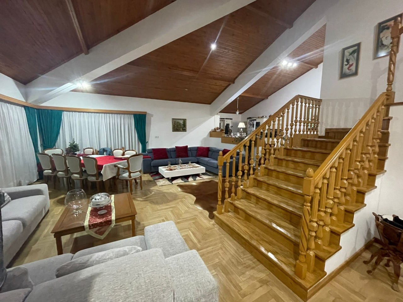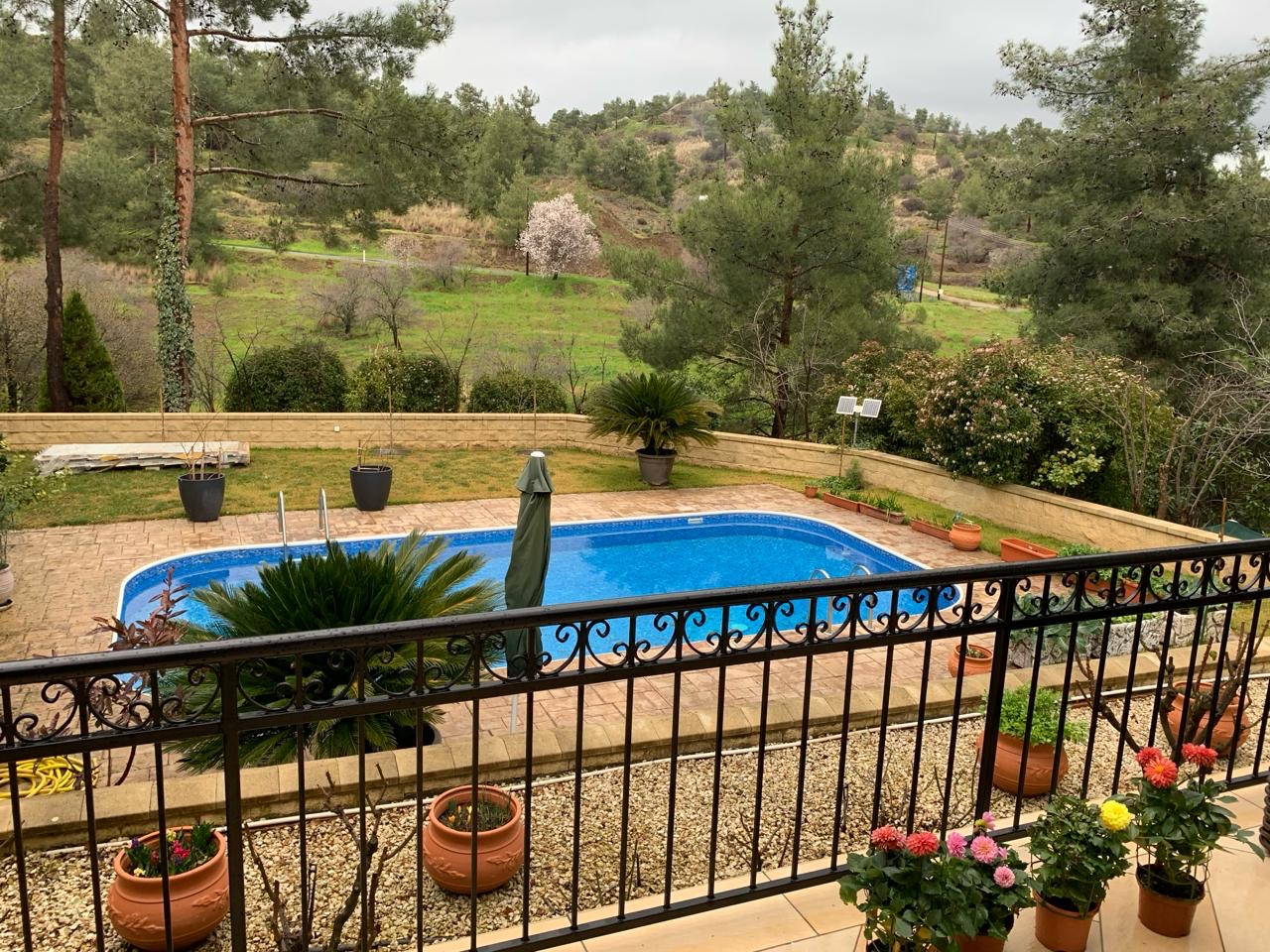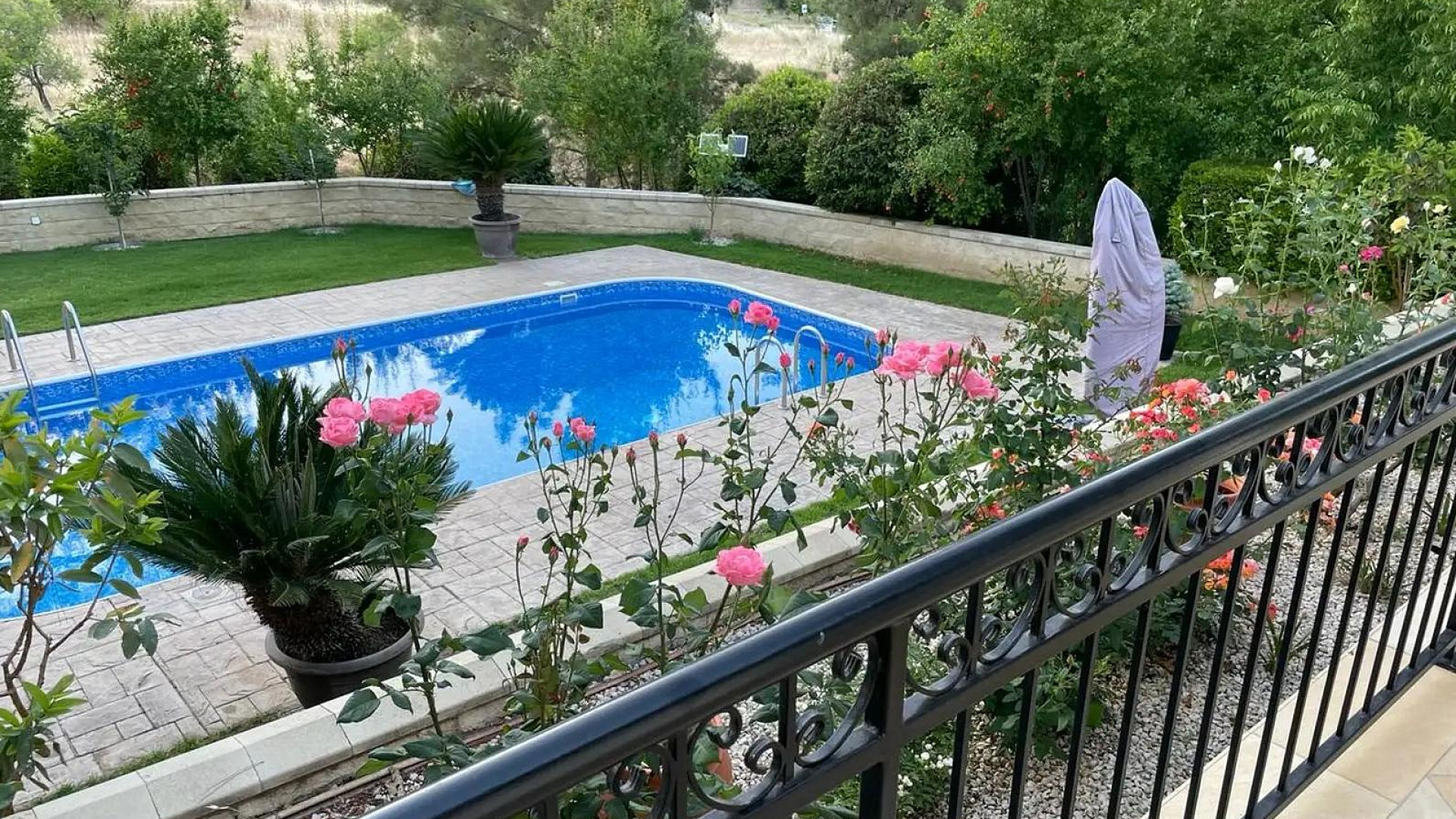 Villa of 250 m2 for rent in Kapedes area, Nicosia. The villa includes 3 bedrooms, 3 bathrooms, a spacious living room with a bench, a kitchen, an attic, a storage room and balconies. The property is fully furnished and equipped with all necessary household appliances, air conditioning in all rooms, alarm system and other amenities for a comfortable stay. On a 3000 m2 plot there is a swimming pool, a well-kept garden and a covered parking. The house is located a 30-minute drive from Nicosia.