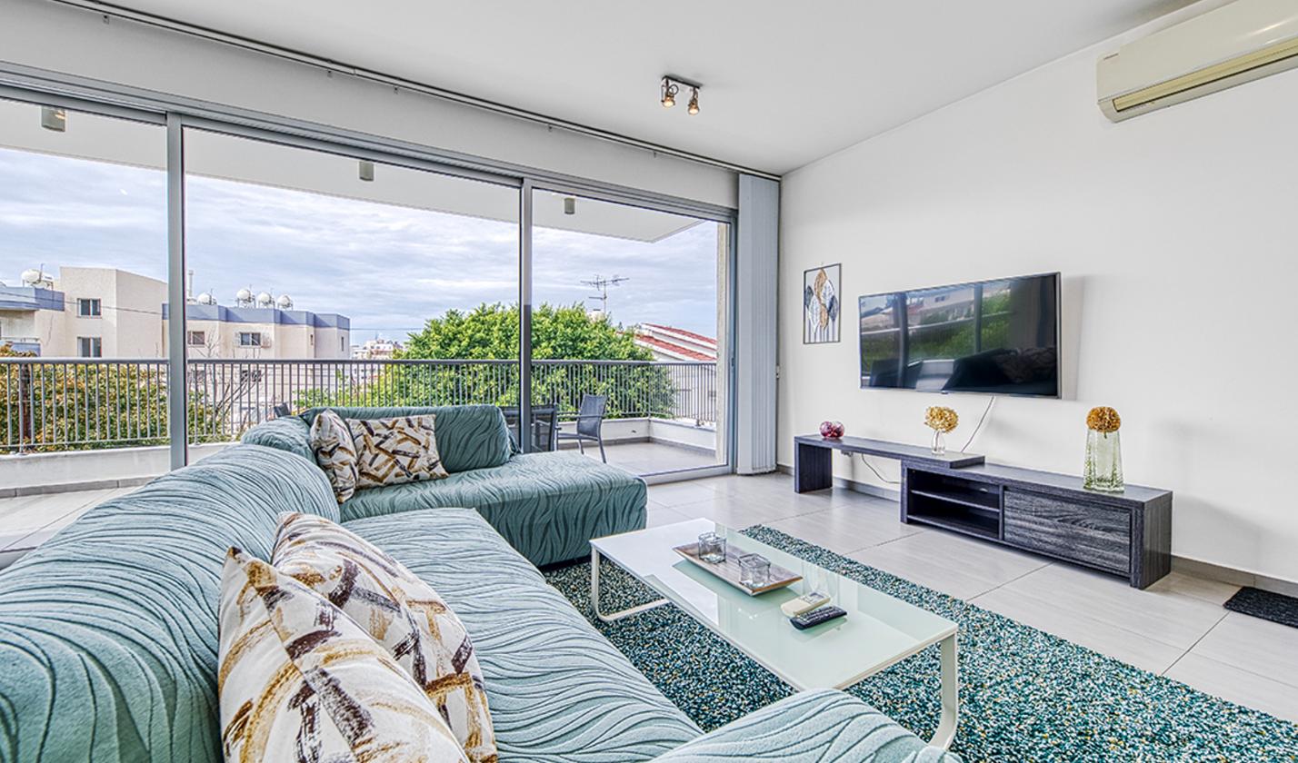 A cozy two-bedroom apartment for rent in the area of Agios Nektarios Limassol, located on the second floor of a small residential building. Convenient location — close to Makariou Avenue and schools, without through traffic. The apartment has two bedrooms, one bathroom, a storage room and one parking space. The kitchen is fully equipped, including a dishwasher, washing machine and dryer. Currently, the apartment is partially furnished: there is a dining table with chairs, two bar stools, a sofa and a double bed. There are air conditioners in the living room and both bedrooms.
