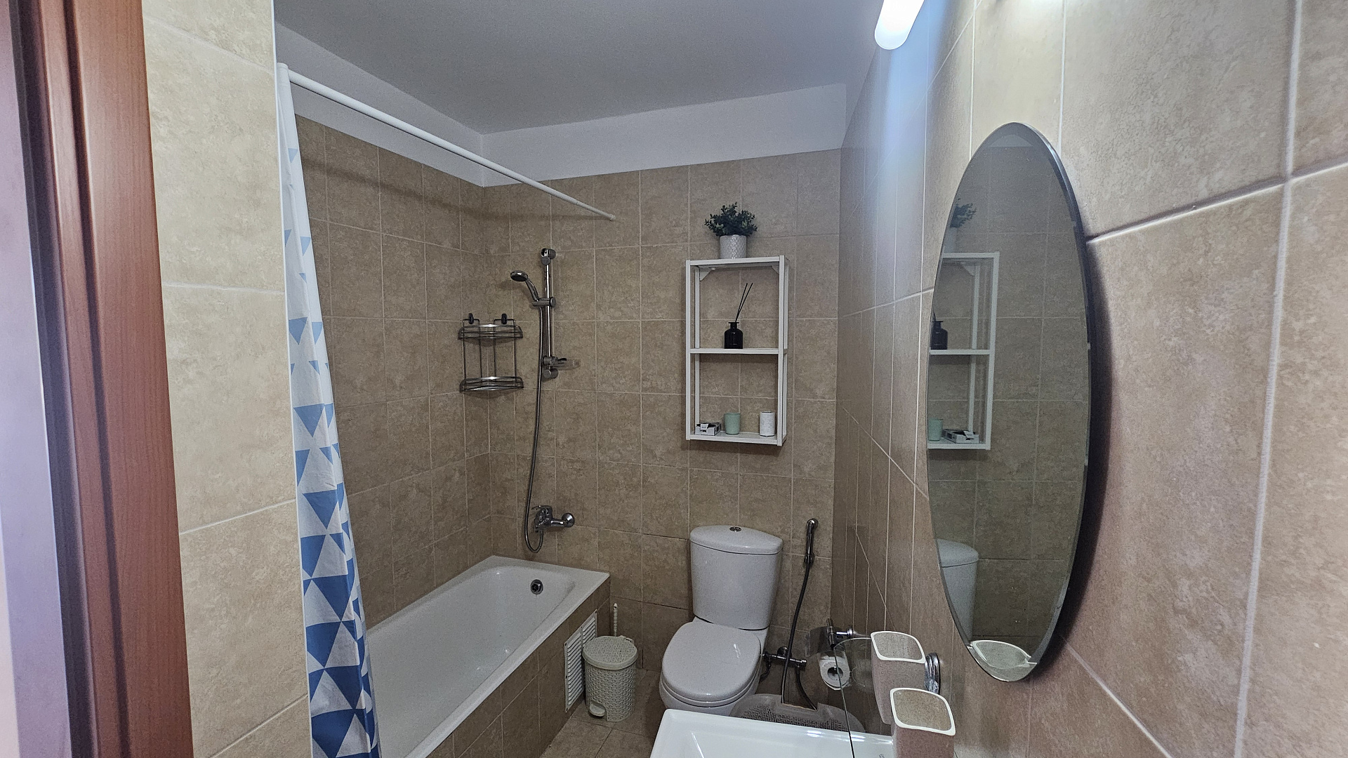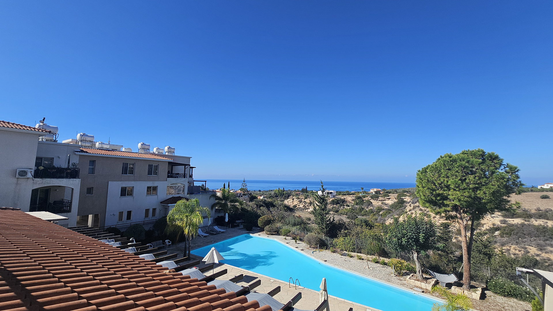 For rent an apartment with 2 bedrooms and 2 bathrooms, fully furnished and equipped, a full set of kitchen equipment and dishes, full air conditioning, Wi-Fi, TV, a spacious terrace with stunning sea views. Tala Olympia complex - 2 buildings, 32 apartments, about 35 people live permanently in 15 apartments, the owners come to the rest of the apartments in summer or autumn for short periods. This apartment is in the new building A, in the neighboring building B there is a sports gym, tennis table, large billiards. On the territory between the buildings there is a large swimming pool with sun beds and umbrellas. There is a parking space in Building A in the covered Parking.