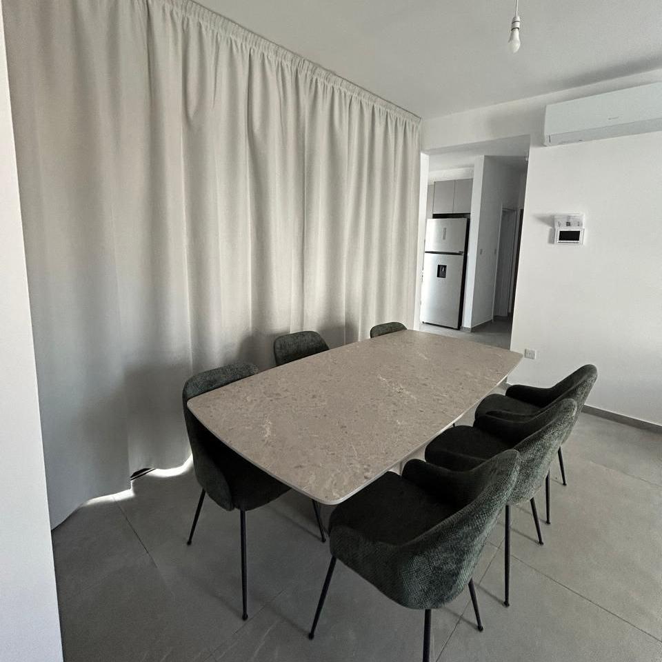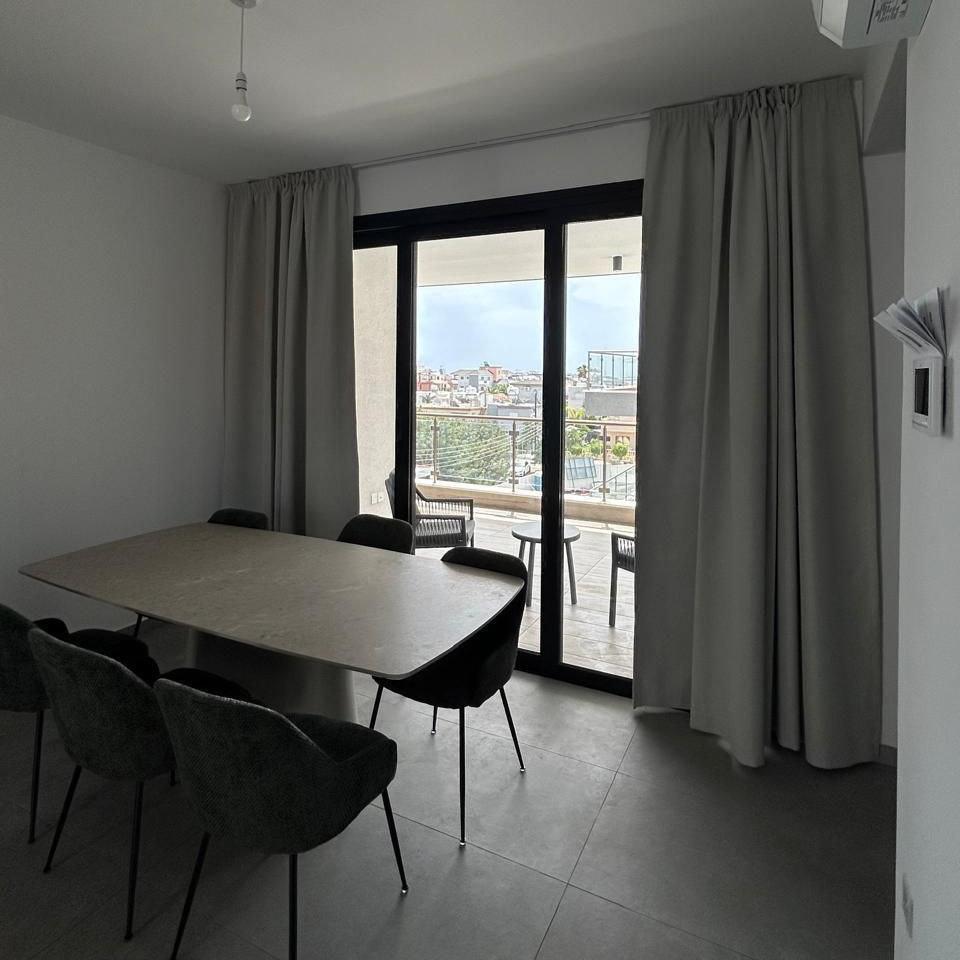 Two-bedroom apartment for rent on the second floor in a residential complex in the area of Agios Athanasios, Limassol. The total area is 103m2, including a covered veranda. The apartment has two bedrooms, one bathroom, a cozy living room and a fully equipped kitchen. There is a covered parking and a storage room. The apartment is vacated in late October or early November.