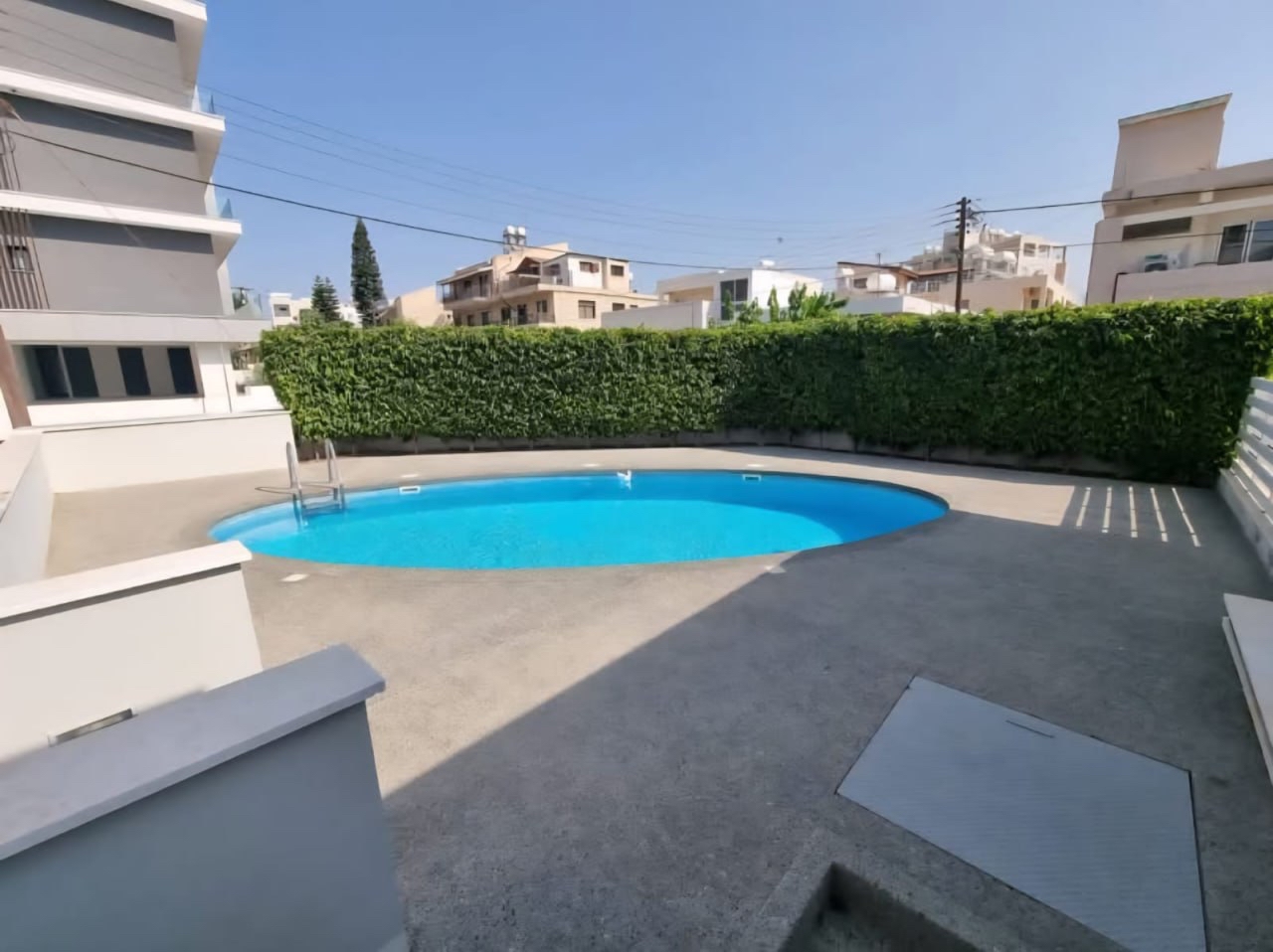 Two-bedroom apartment of 106 m2 for rent in a residential complex in the area of Mesa Geitonia, Limassol. The apartment includes 2 bedrooms, 1 bathroom, 1 guest bathroom, a spacious living room, a kitchen, a veranda of 16 m2 and a storage room. The property is fully furnished and equipped with all necessary appliances: TV, air conditioning, dishwasher, washing machine, Wi-Fi, as well as shutters on the windows. The complex has a communal swimming pool.