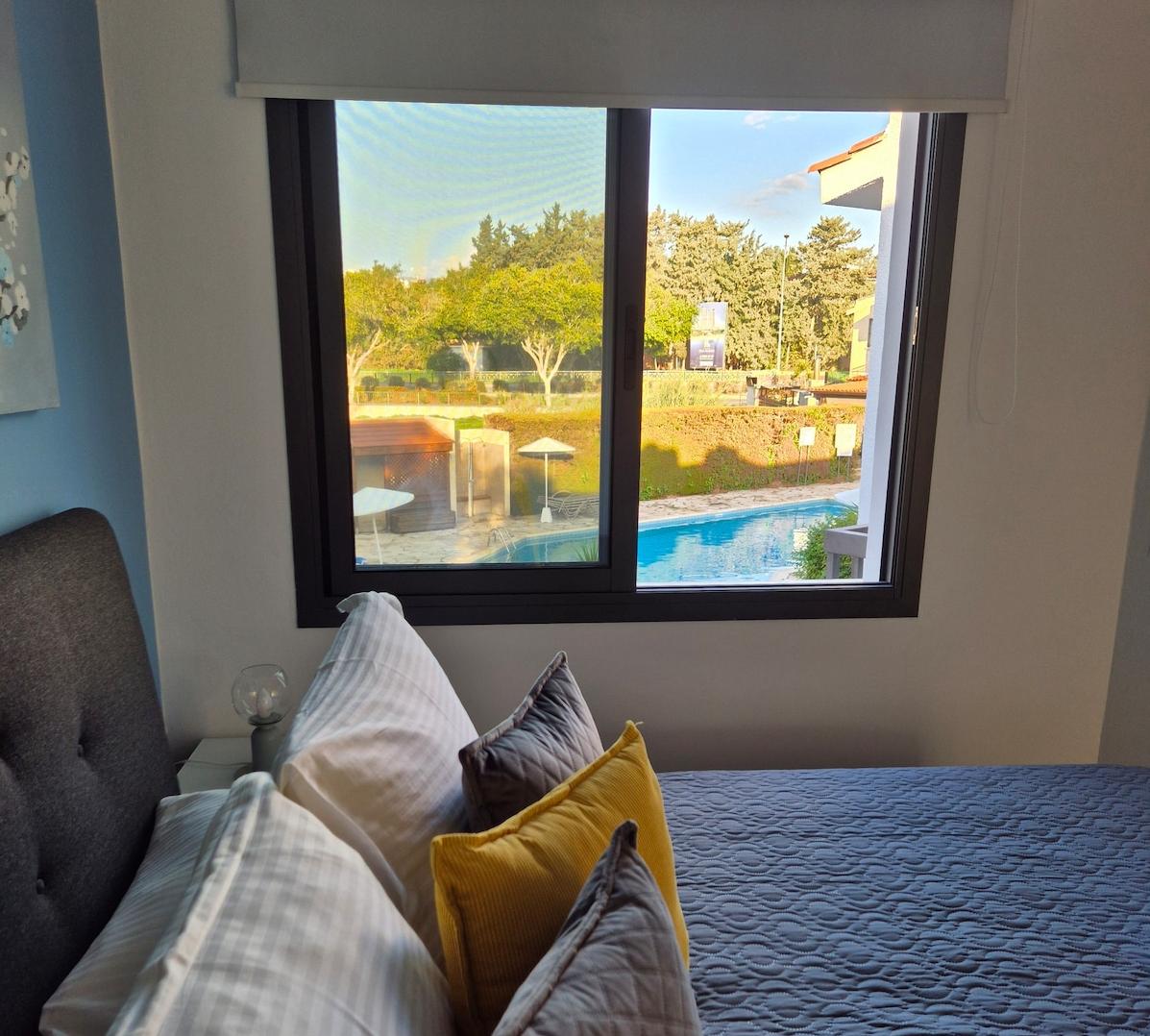 For rent a three-bedroom apartment of 170 m2 in the area of Kato Paphos, Paphos city. The apartment includes three spacious bedrooms, two bathrooms, a kitchen, a living room and a balcony overlooking the garden. The apartment is fully furnished, equipped with all necessary household appliances and an air conditioning system in all rooms. There is access to a communal swimming pool and a well-kept garden, Wi-Fi (Cyta) is provided. The property is located just 150 meters from the sea, next to the Anemi Hotel, within walking distance from the beach and all necessary infrastructure.