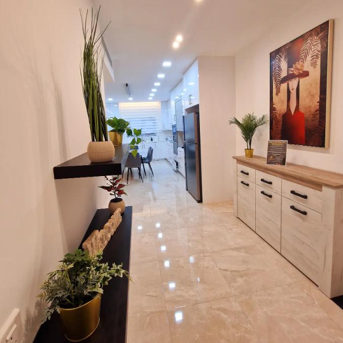 Three-bedroom apartment for rent in the area of Drosia, Larnaca with a total area of 130 m2, located on the fourth floor in a modern residential complex.. The apartment is fully furnished, has recently undergone a complete renovation and is ready to move in. There are only 15 apartments in the building, each with its own parking space. For security, 24/7 video surveillance has been installed, entry and exit barriers, and a security guard is on duty at night. The apartment has a spacious living room, a fully equipped kitchen with appliances, two bathrooms, a balcony and an air conditioning system in all rooms.