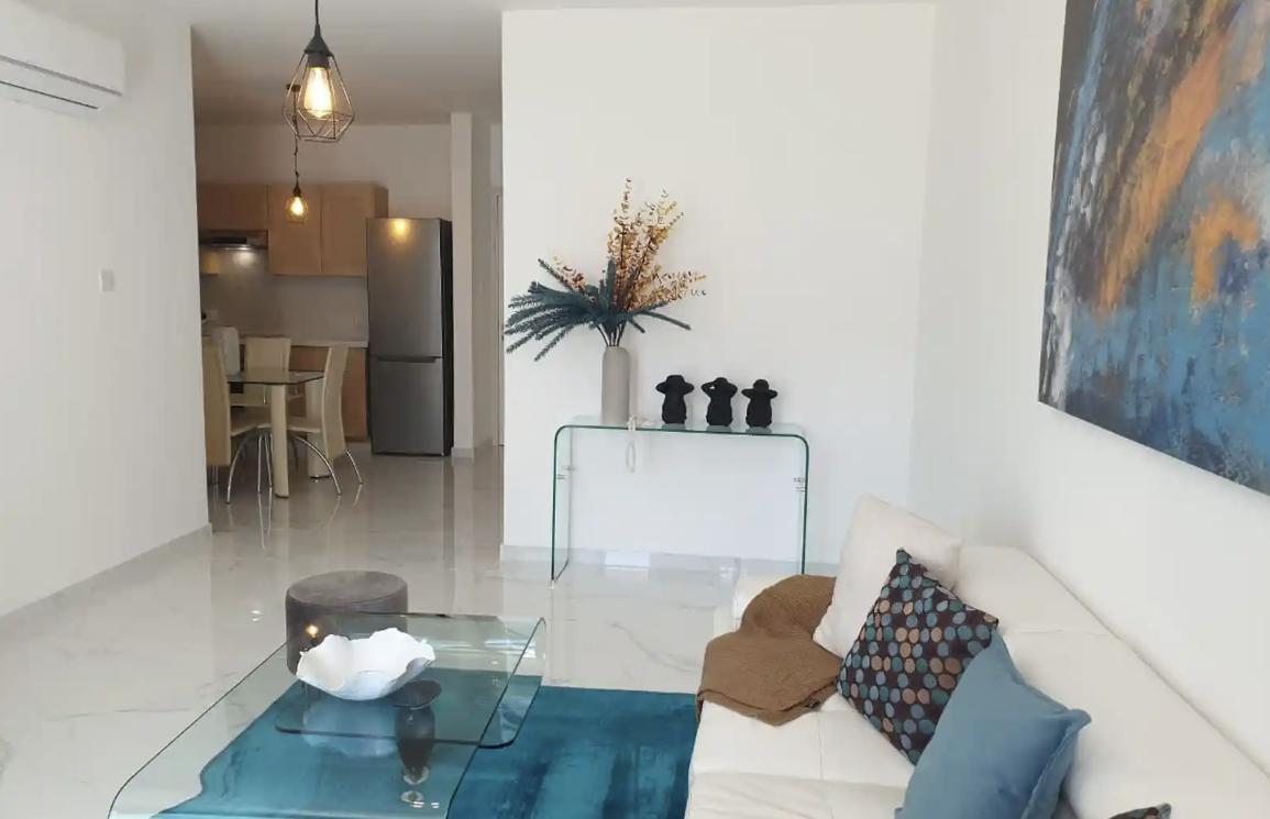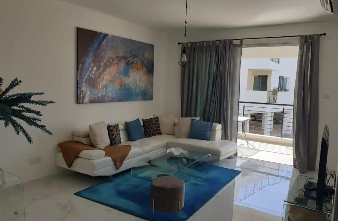 Two-bedroom apartment of 95 m2 for rent in Kaparis, Famagusta. The apartment includes two bedrooms, one bathroom, a kitchen, a living room and a balcony. The apartment is fully furnished and equipped with household appliances, equipped with an air conditioning system. The gated complex has a communal swimming pool, elevator and parking. The distance to the sea is only 800 meters, which makes the location convenient for both permanent residence and recreation.