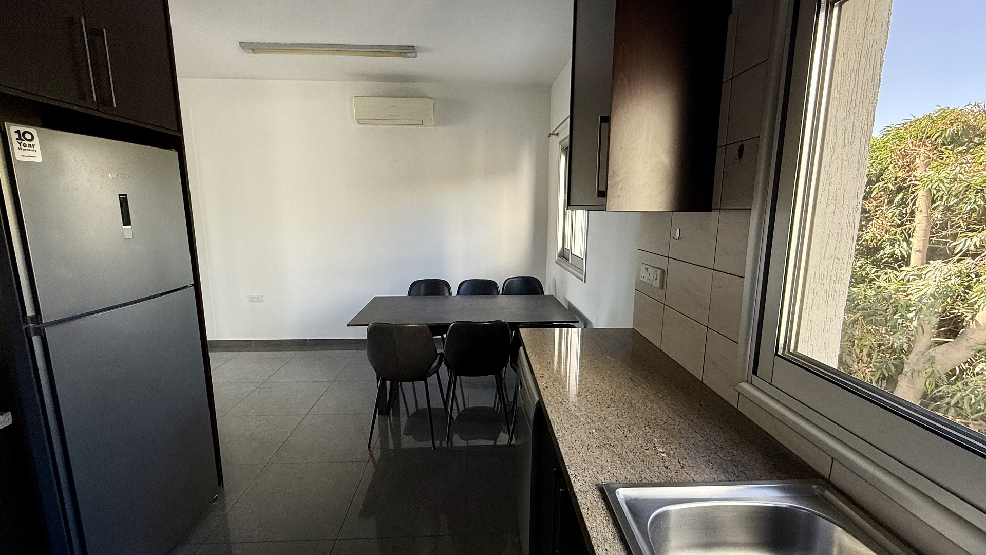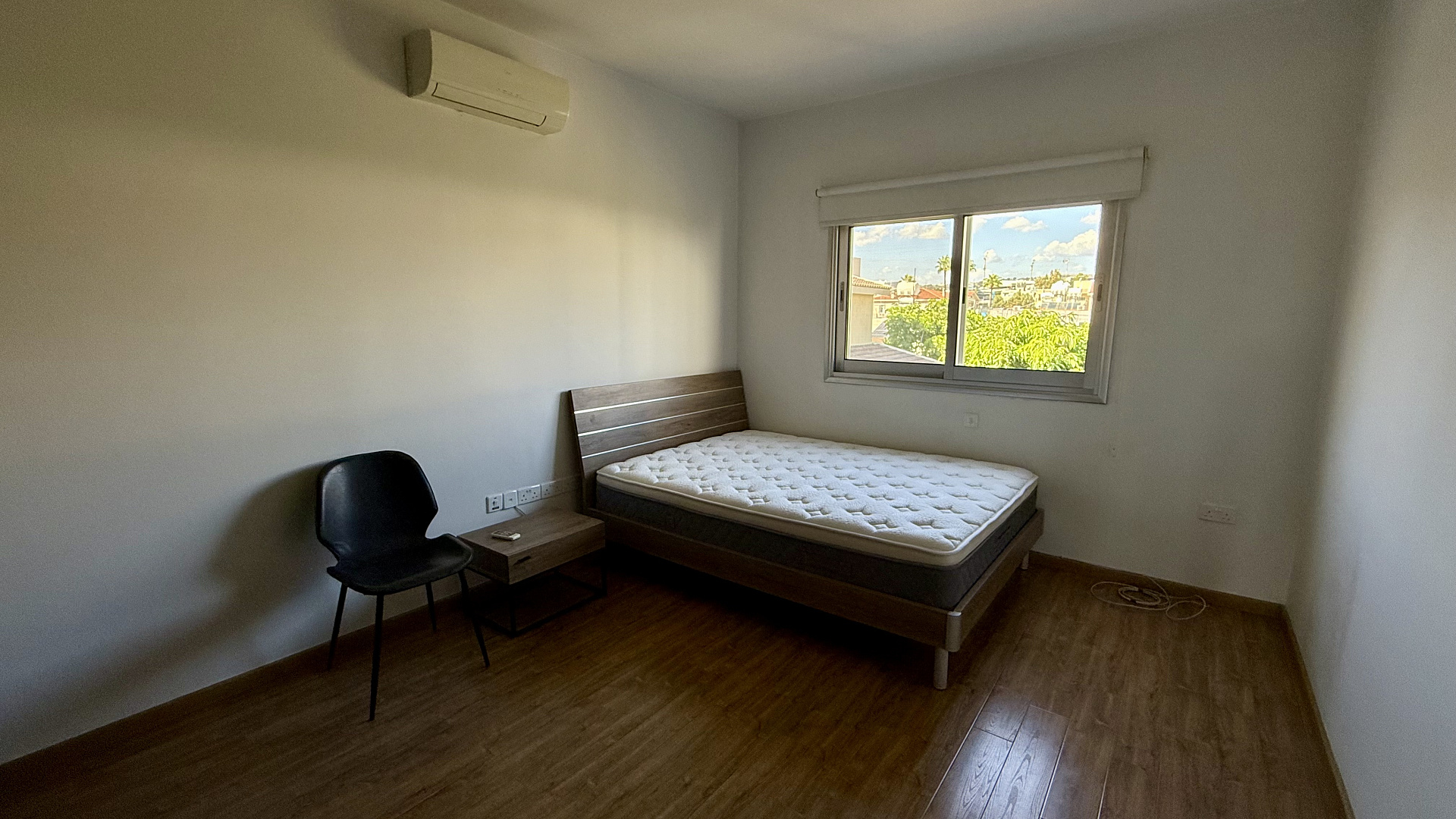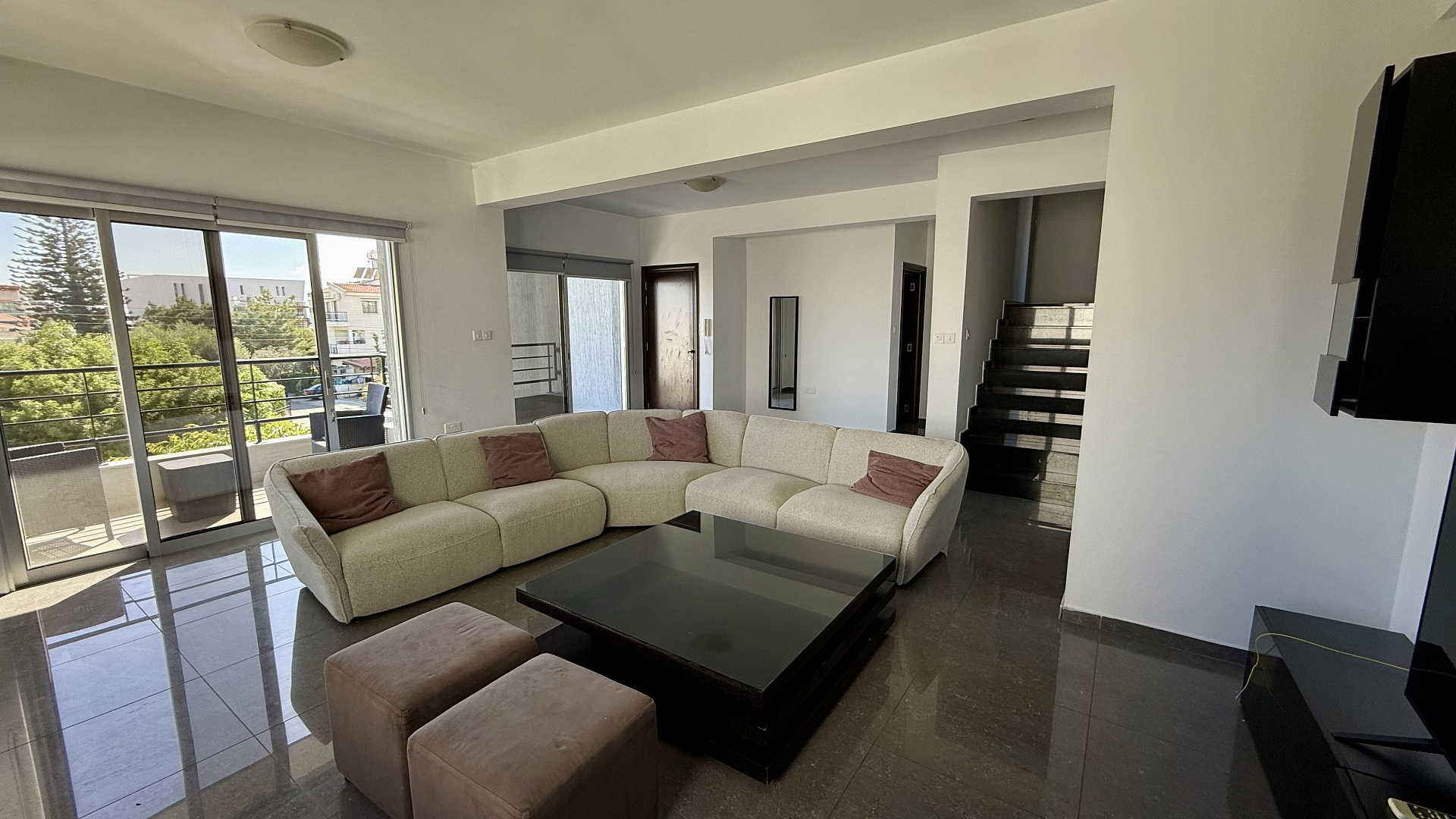 A 145 sq m duplex apartment is available for rent in the Kapsalos area of Limassol. It features three bedrooms, one bathroom, one guest toilet, a separate kitchen, a spacious living room, and three balconies. The property is furnished and equipped with all necessary utilities, air conditioning in every room, appliances, and mosquito nets.