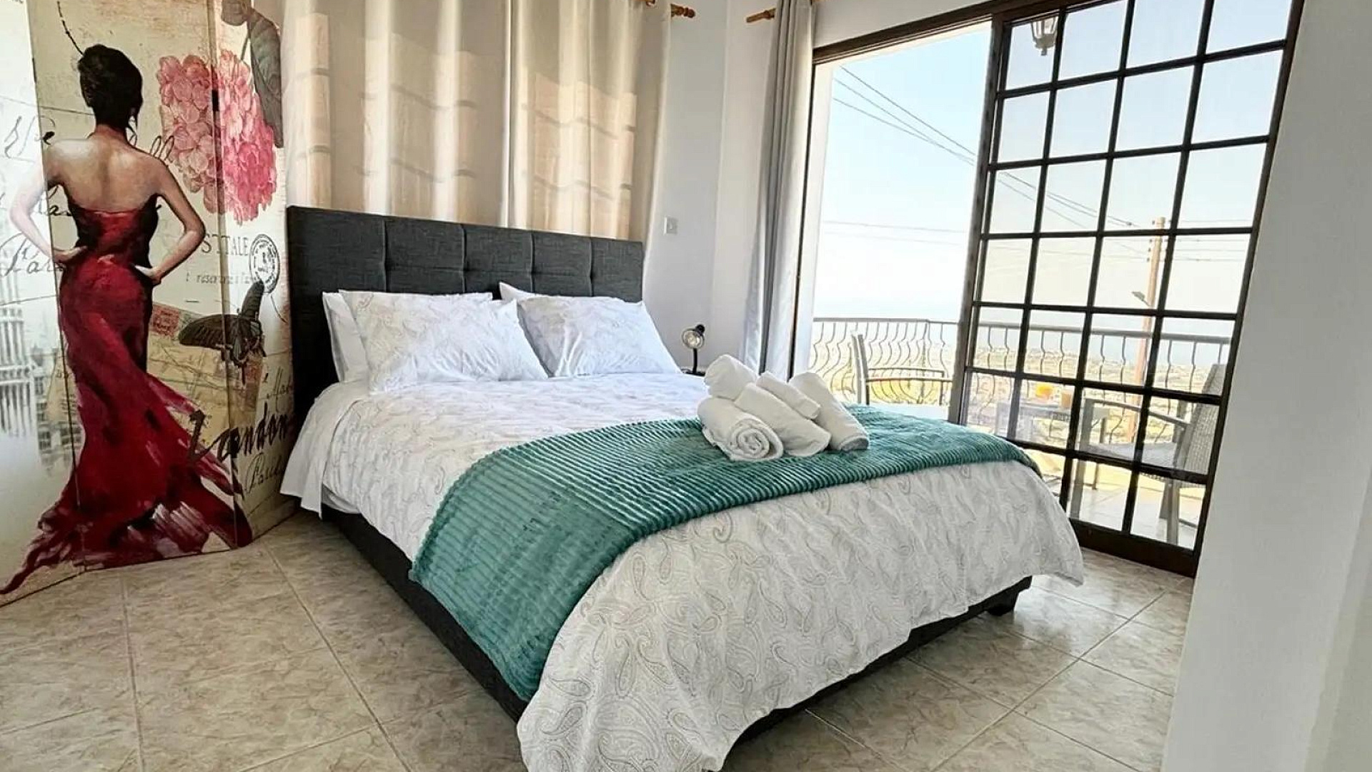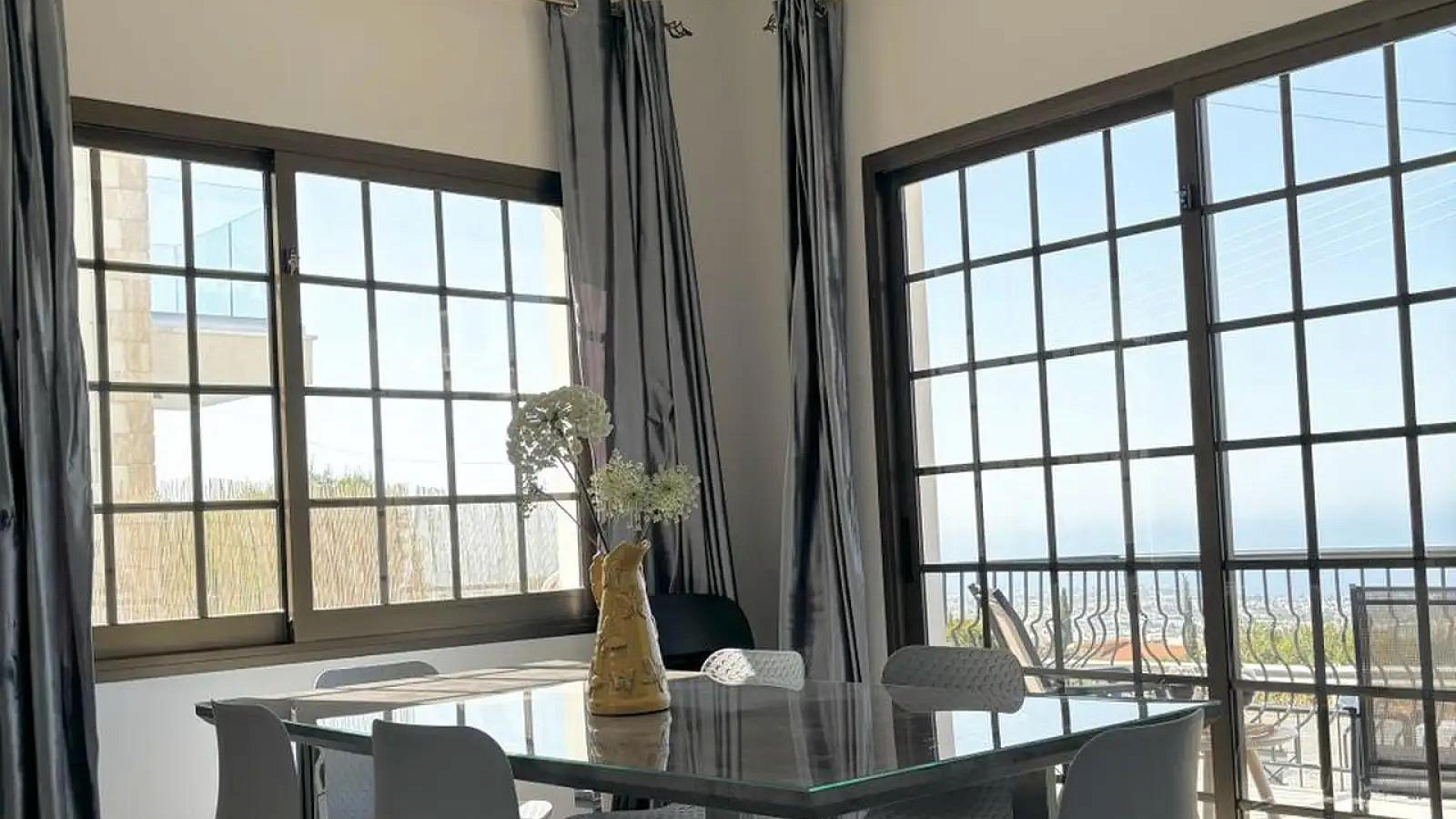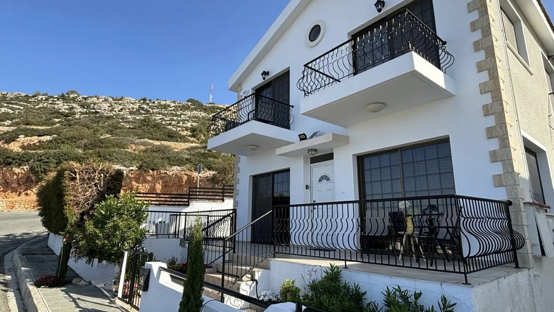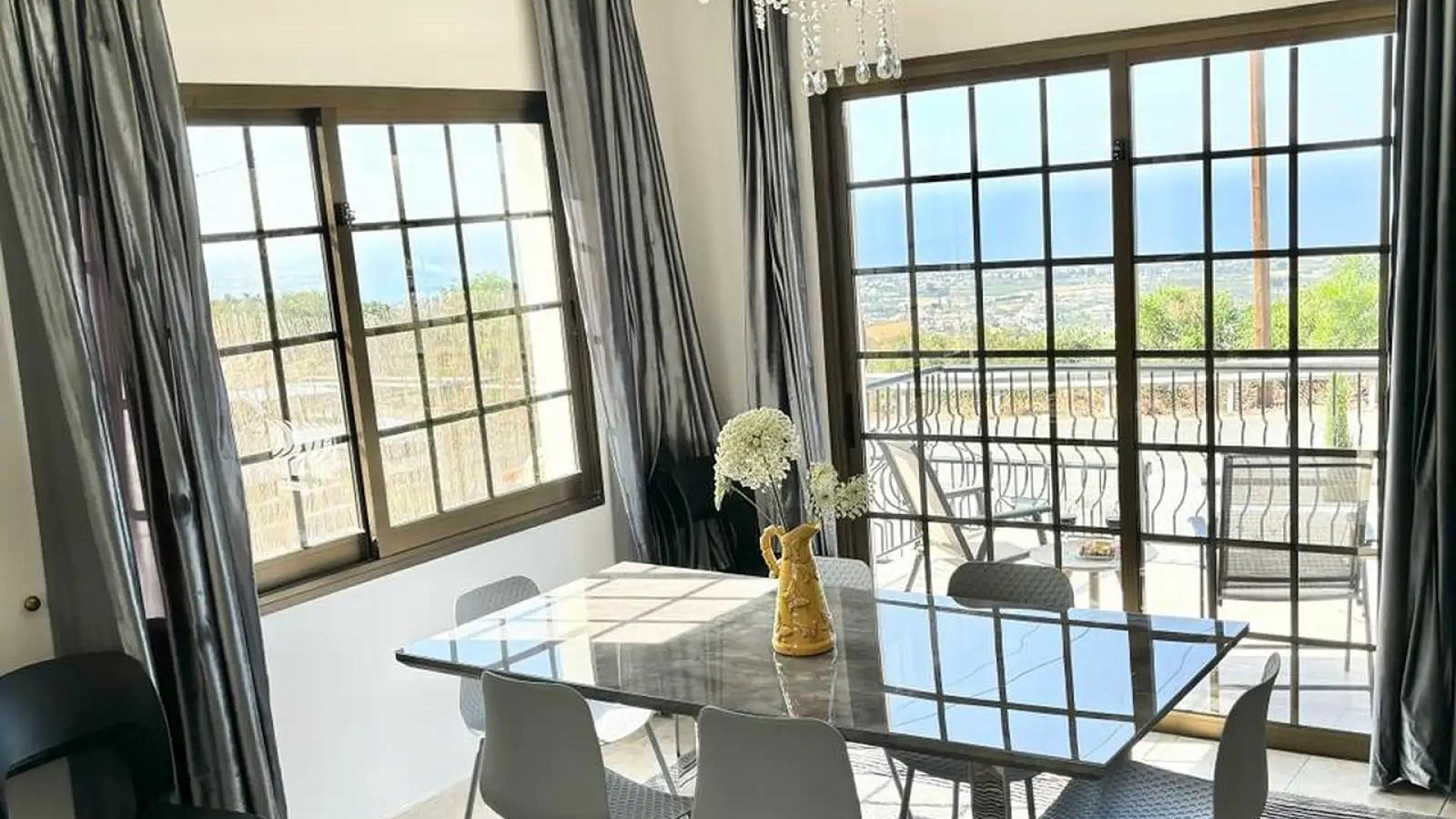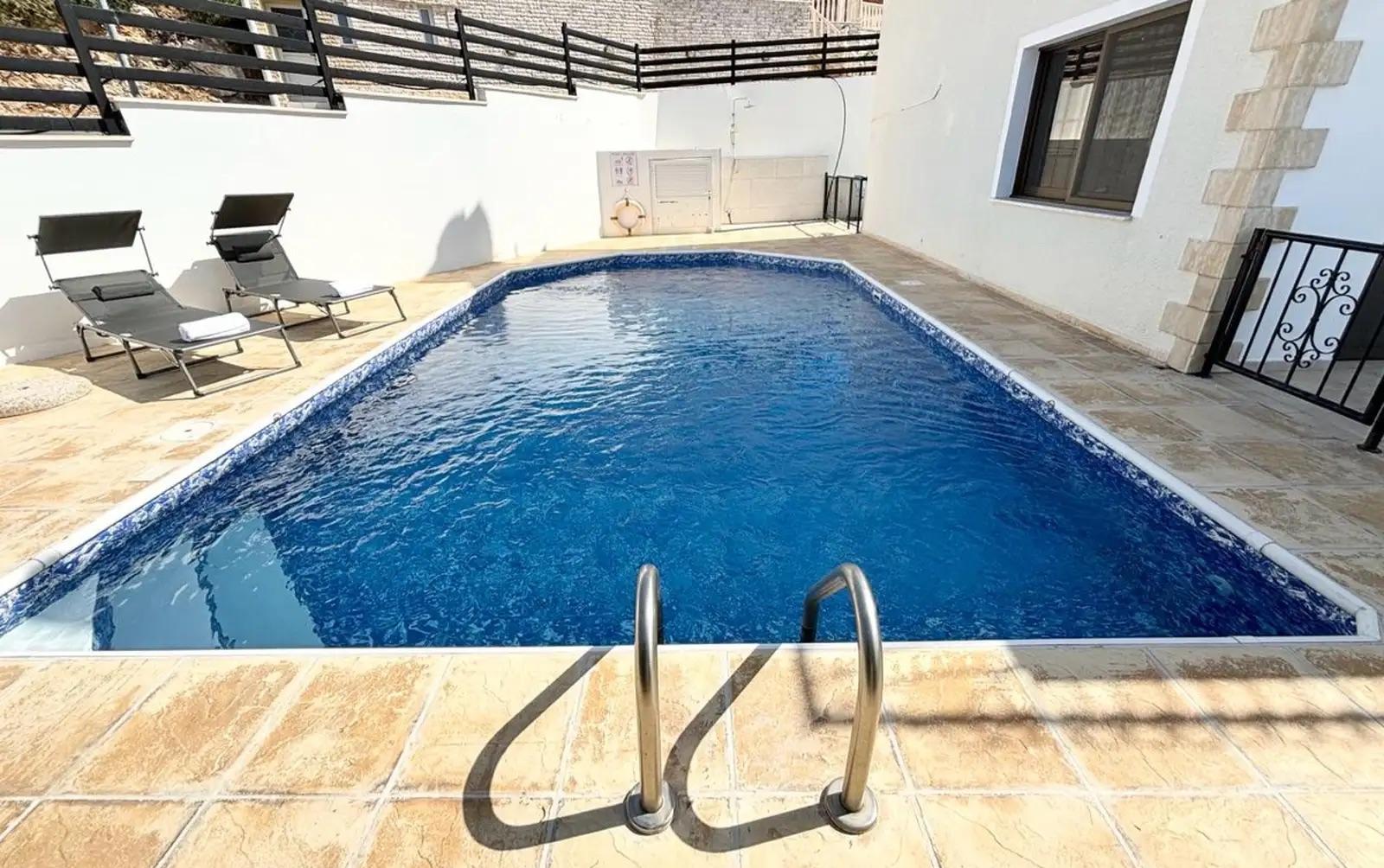 Villa for rent with an area of 334 m2 in the area of Pegeia, Paphos. The villa includes 3 bedrooms, 2 bathrooms, a spacious living room, a separate kitchen, a pantry, balconies and a terrace with sea views. It features a private swimming pool, garden and outdoor recreation area. The property is fully furnished and equipped with modern appliances, including a dishwasher, an oven, a washing machine, a flat-screen TV with satellite channels, as well as air conditioning in all rooms and a photovoltaic system. There is also free Wi-Fi, private parking and an alarm system. The villa is located in a quiet area of Pegeia with panoramic sea and mountain views, just 5.5 km from Paphos Zoo and about 14 km from Tombs of the Kings. There are shops, restaurants and other amenities nearby. The accommodation does not allow smoking and is suitable for guests with allergies. Pets are allowed.