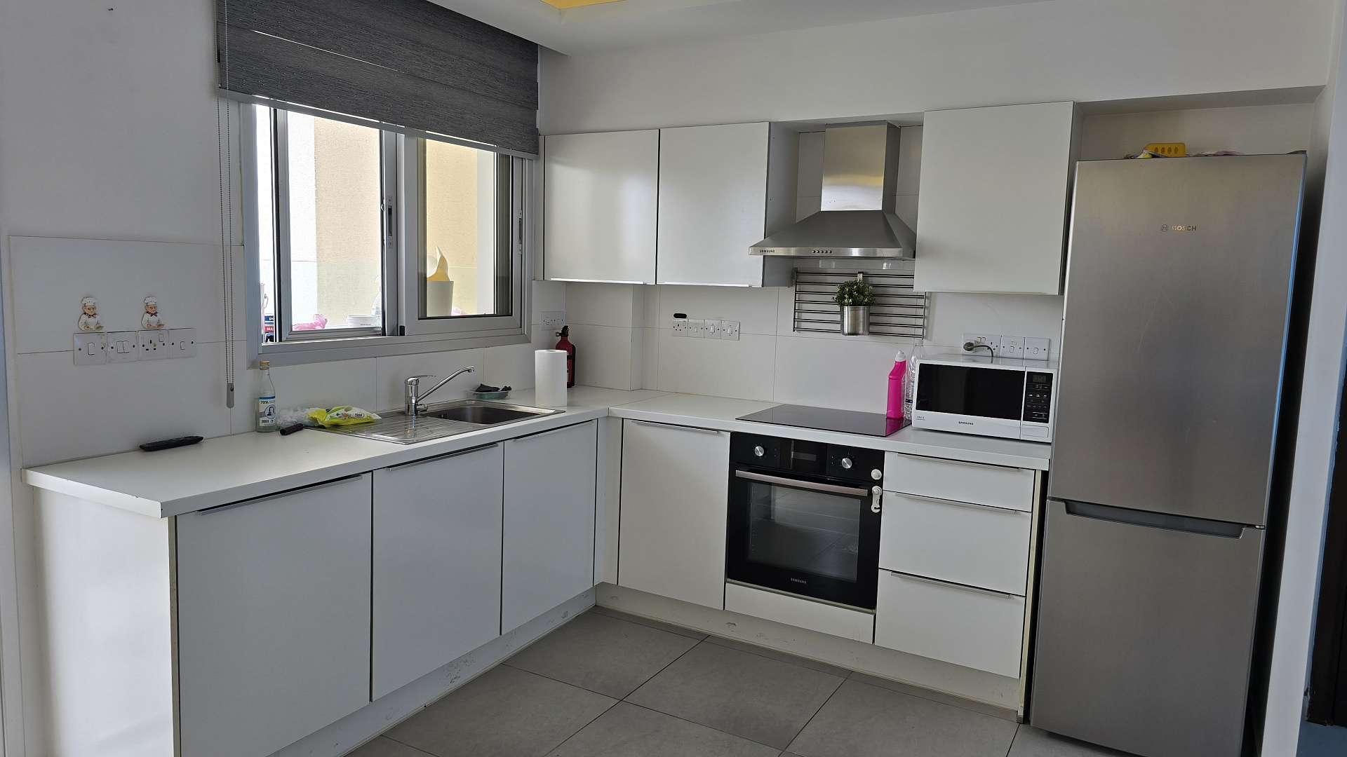 3 bedroom apartment with 2 bathrooms for rent in the central area of Chrysopolitissa, Larnaca. Fully furnished and equipped with household appliances. There are air conditioners, a spacious covered veranda, covered parking and a storage room. Plus 50 euros for utilities. The entire infrastructure is nearby. The beach is within walking distance. The accounts are being transferred.