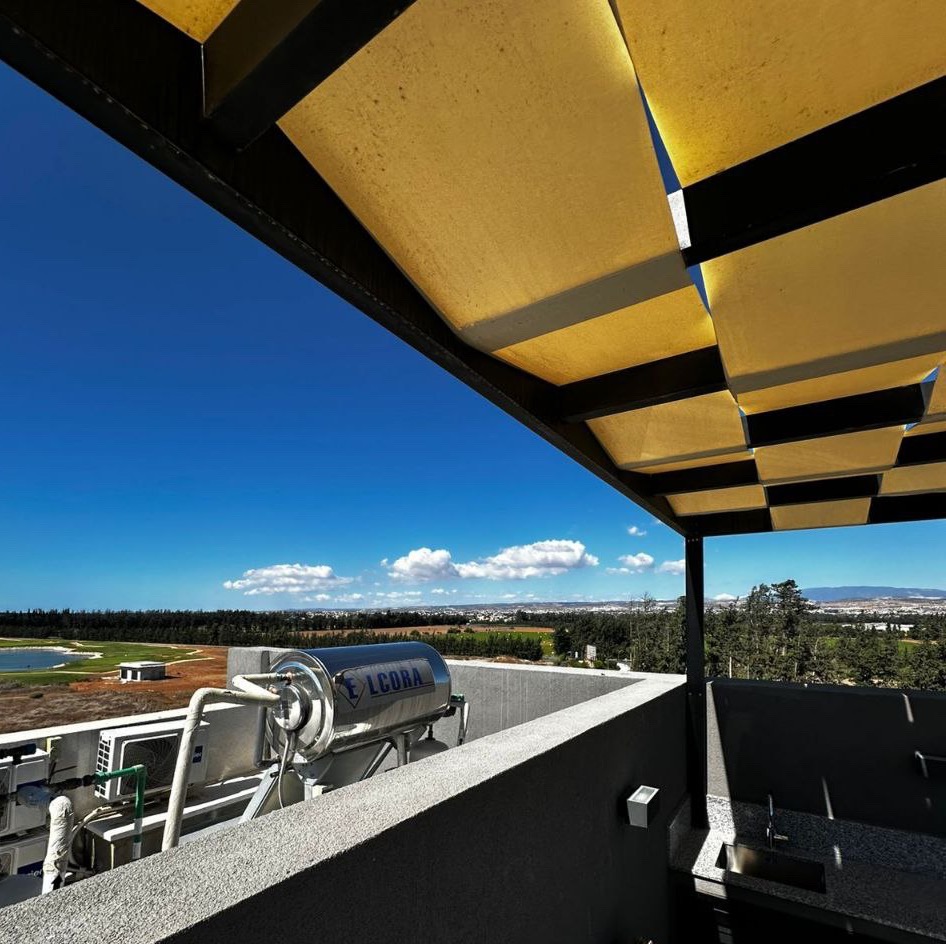 One-bedroom penthouse of 105 m2 for rent in Zakaki, Limassol, in a prestigious residential complex. The penthouse is located on the 4th floor. The property is fully furnished and equipped with all necessary household appliances. The complex is a modern gated community with developed infrastructure: on its territory there are swimming pools, a fitness room, tennis and padel courts, a basketball court, bike paths, yoga areas, a playground, a bakery cafe and a landscaped park. The complex is located near MyMall, City of Dreams Mediterranean Casino, Limassol Greens Golf Resort and Lady's Mile Beach.