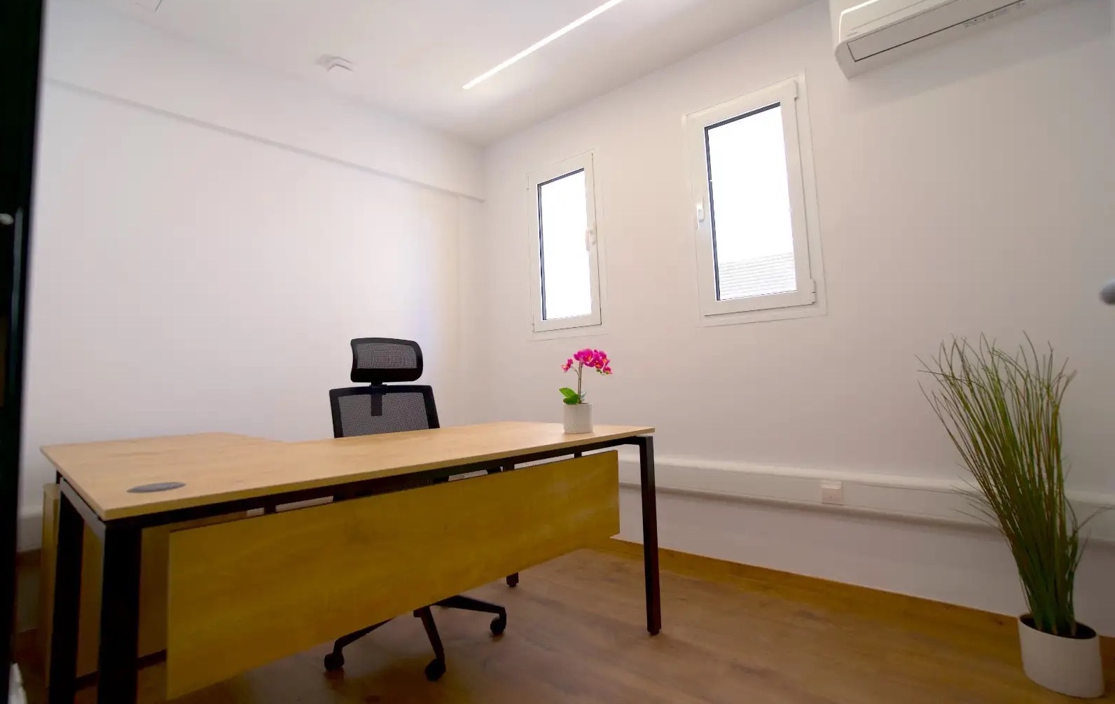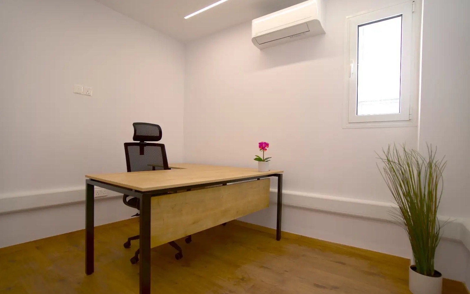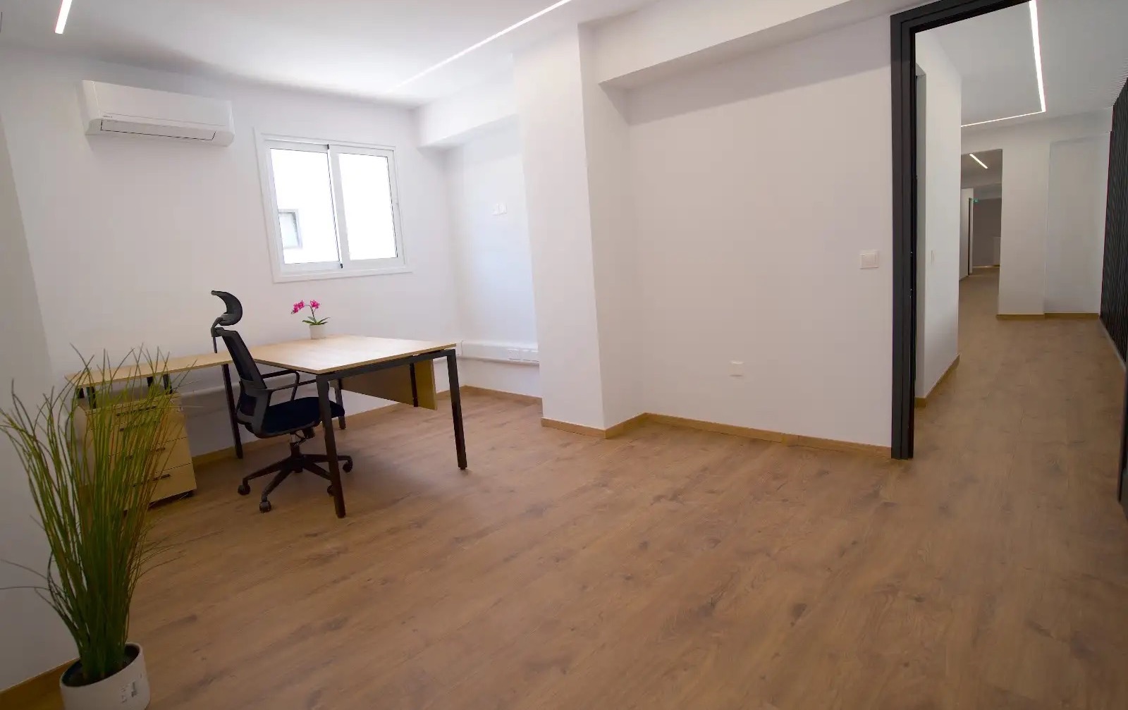 Office space of 134 m2 for rent in the area of Town Center Nicosia, Nicosia. The office floor includes an open space kitchen, a conference room, a coffee and tea area, a pantry, and also provides 4 covered parking spaces. The premises are designed to comfortably accommodate up to 7 employees and are fully operational. Additionally, there is a paid public parking nearby. The rental price includes water, electricity, high-speed Internet, secretarial services, use of the conference room and kitchen. The building is located on a quiet street next to Makarios Avenue, in the very center of Nicosia, close to shops, banks and offices of large companies — an ideal solution for small businesses, freelancers and professionals who value prestige and convenience. The working hours are from 8:30 to 18:00.