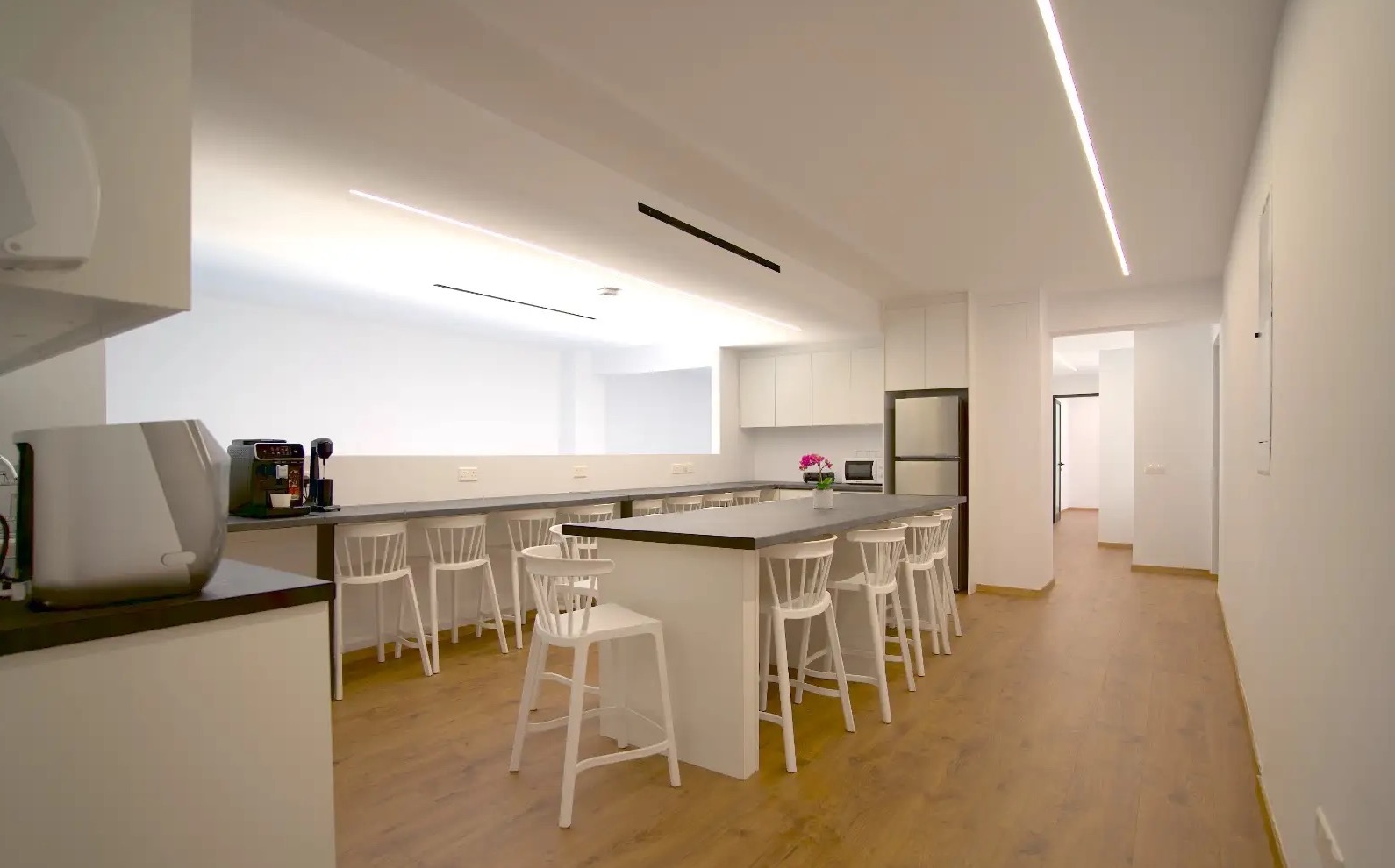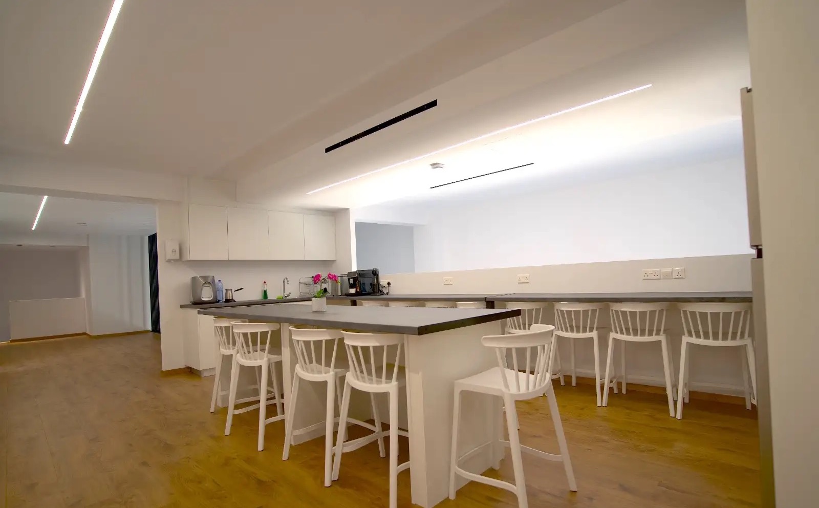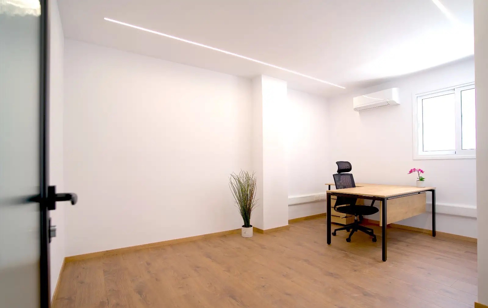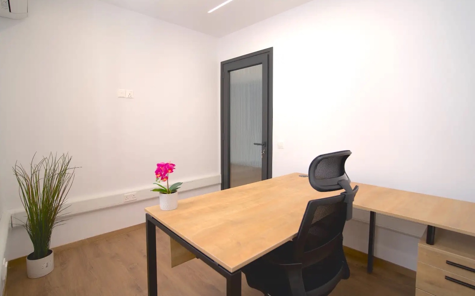 Office space of 134 m2 for rent in the area of Town Center Nicosia, Nicosia. The office floor includes an open space kitchen, a conference room, a coffee and tea area, a pantry, and also provides 4 covered parking spaces. The premises are designed to comfortably accommodate up to 7 employees and are fully operational. Additionally, there is a paid public parking nearby. The rental price includes water, electricity, high-speed Internet, secretarial services, use of the conference room and kitchen. The building is located on a quiet street next to Makarios Avenue, in the very center of Nicosia, close to shops, banks and offices of large companies — an ideal solution for small businesses, freelancers and professionals who value prestige and convenience. The working hours are from 8:30 to 18:00.