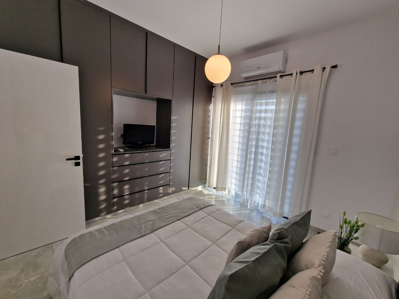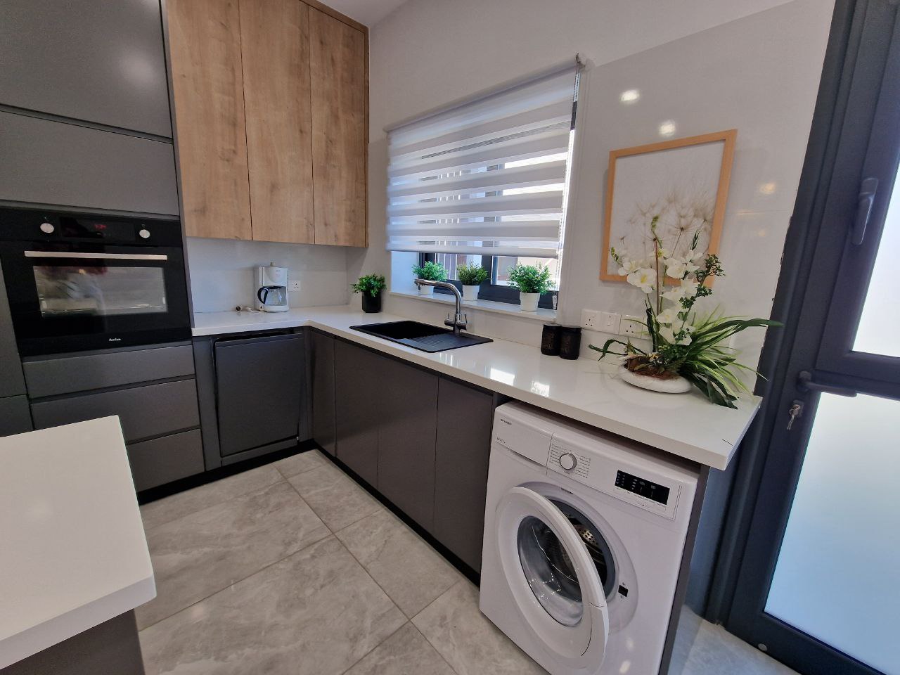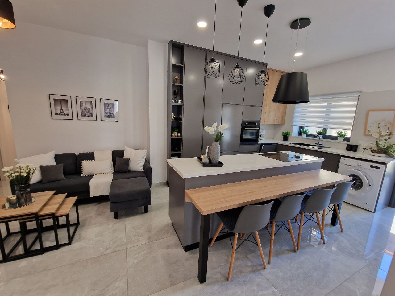 2 bedroom apartment for sale in Limassol, Zakaki. The apartment has an area of 75 m2 with a veranda of 10 m2 and a private roof garden of 45 m2. It is located on the 2nd floor of a 2-storey building and includes 2 bedrooms, 1 bathroom, a fully equipped kitchen and designer furniture. The apartment has air conditioning, parking is provided. Conveniently located next to My Mall. Within walking distance to Franklin Roosevelt street. No pets.