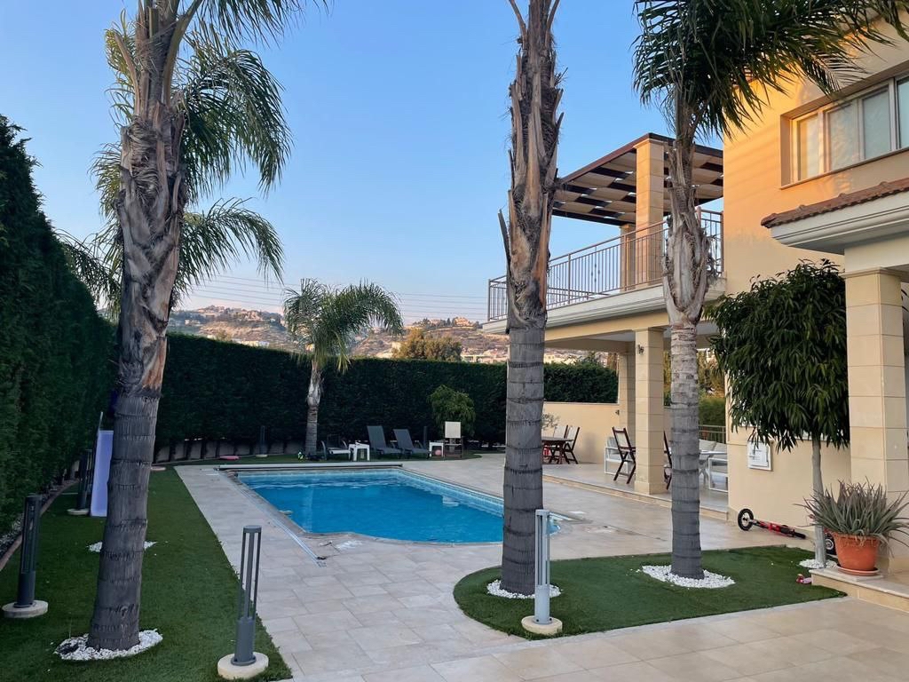 For rent a five-bedroom villa of 450 m2 on a plot of 700 m2 in the area of Agios Tychonas, Limassol. The villa includes five bedrooms, three of which have their own bathrooms, five full bathrooms, a spacious living room, a kitchen, and a large veranda on the second floor. The plot has a swimming pool with automatic protective coating, a separate WC by the pool, a double garage and several fruit trees. The villa is fully equipped with a gas underfloor heating system. The decoration uses plaster elements and hidden color lighting, creating an atmosphere of comfort and modern design. The property is located in the prestigious residential area of Agios Tychonas with convenient access to the sea, shops and the main transport arteries of Limassol.